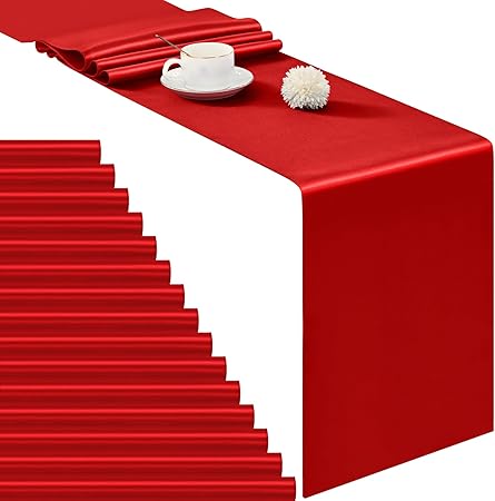 24 Pack Red Satin Table Runner 12�æ72 Inch Long Premium Table Runner for Wedding Bright Silk Table Runner for Party, Banquet, Events, Graduations Decoration fit Rectange and Round Table-Red