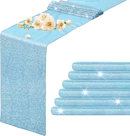 6 Packs Light Blue Sequin Table Runners 12 x 108 Inch Glitter Dining Table Runner Sparkle Sequin Runners for Birthday Wedding Party Bridal & Baby Showers, Party Table Decorations