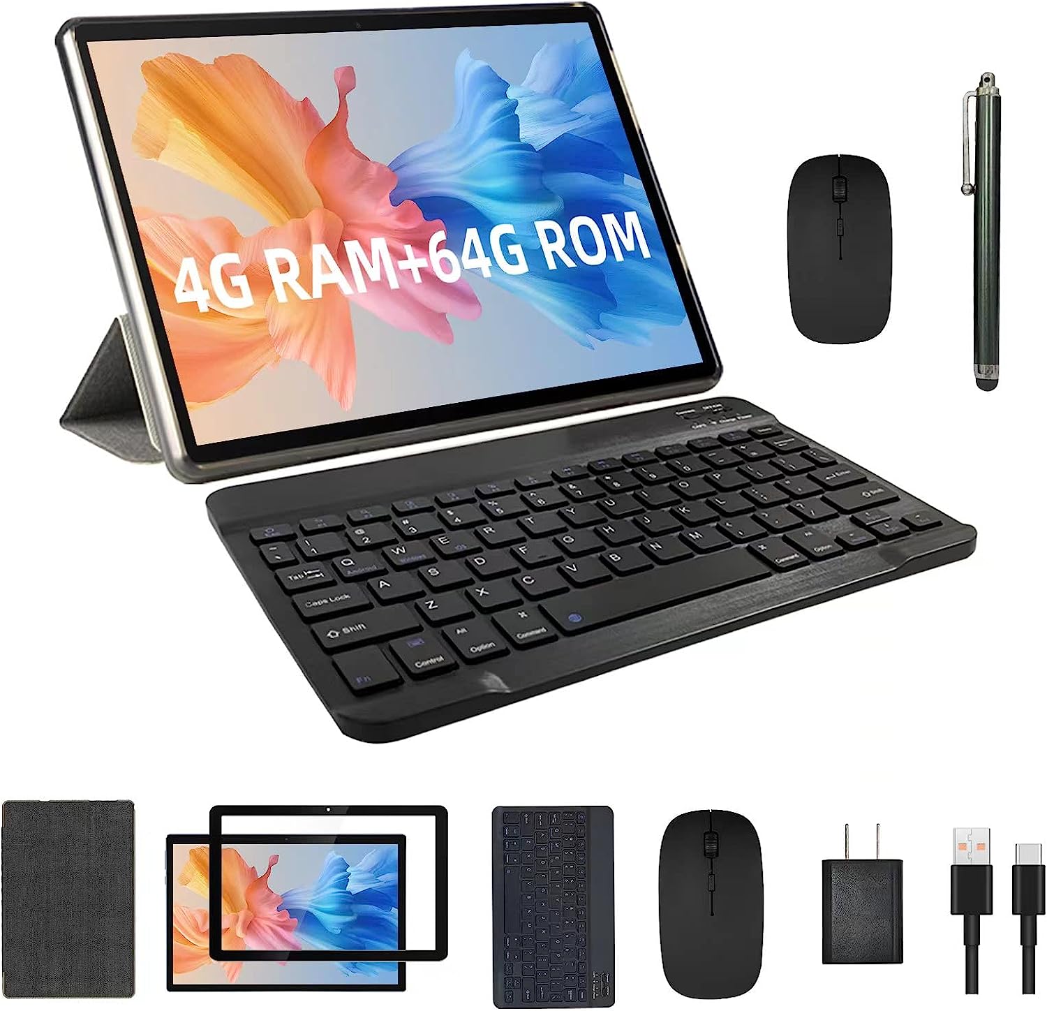 2023 Newest 2 in 1 Tablet, 10 inch Android 11 Tablet with Keyboard, 4GB+64GB, Tablets with Case Mouse Stylus, 1.8GHz Quad Core, 1280*800 HD Touch Screen, 8MP Dual Camera, Games, Wi-Fi, BT Tableta PC