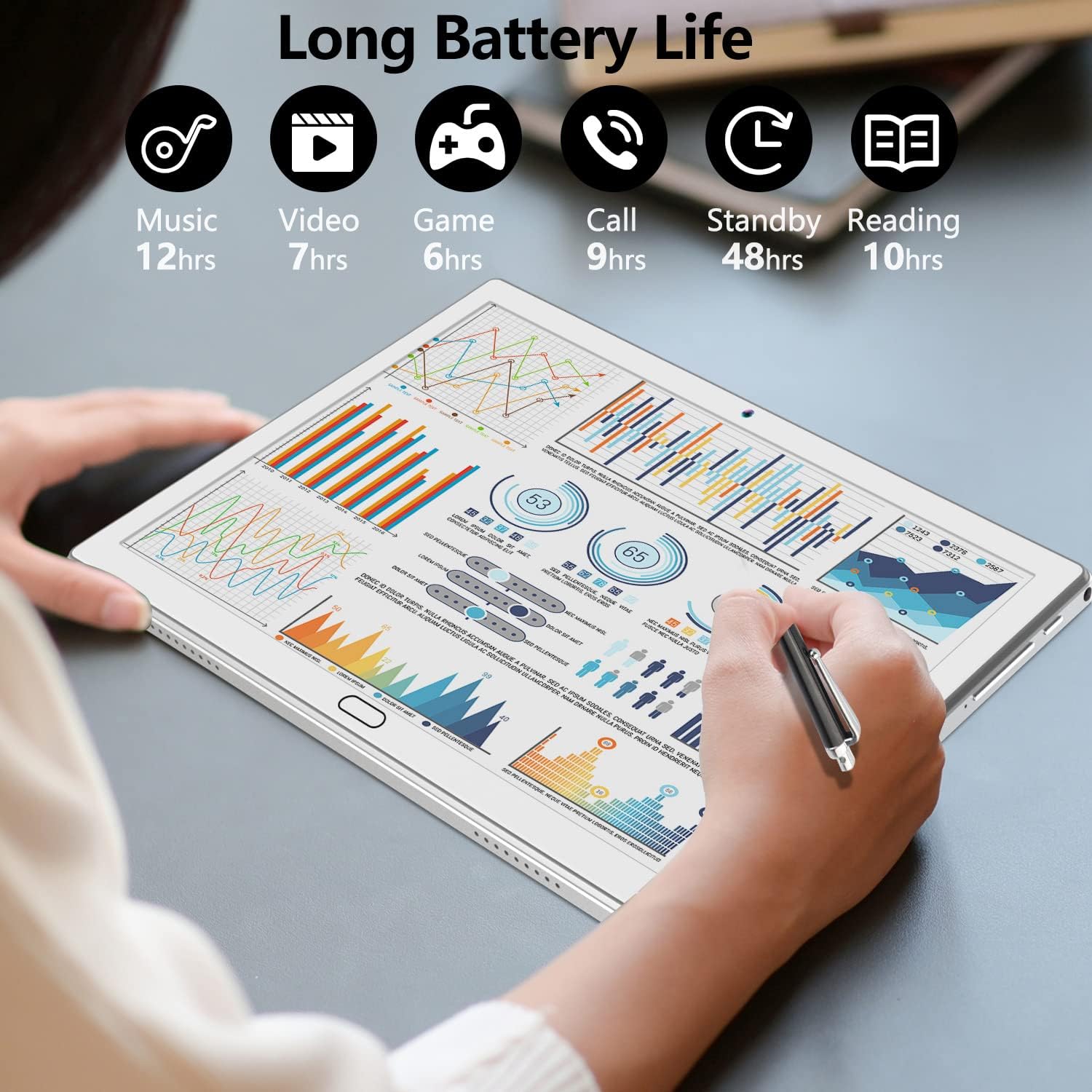 • [Advanced Peripherals] The portable tablet has a 2-in-1 working mode, You can use the Bluetooth function to connect the keyboard, mouse, stylus, With a foldable protective case, You can flexibly turn the tablet into a laptop, mobile phone. This is for Family, Students, Business people, Writers with the best gift.