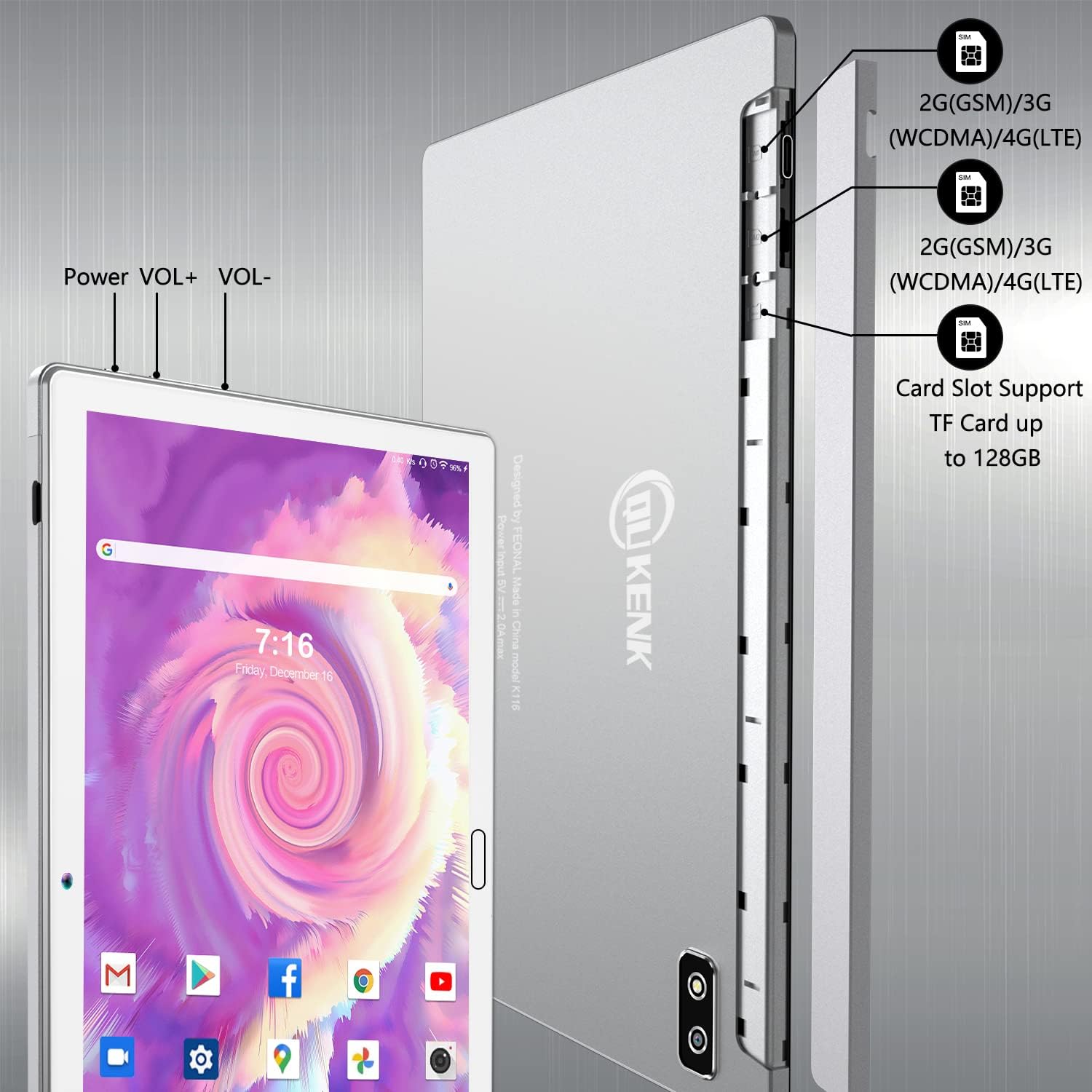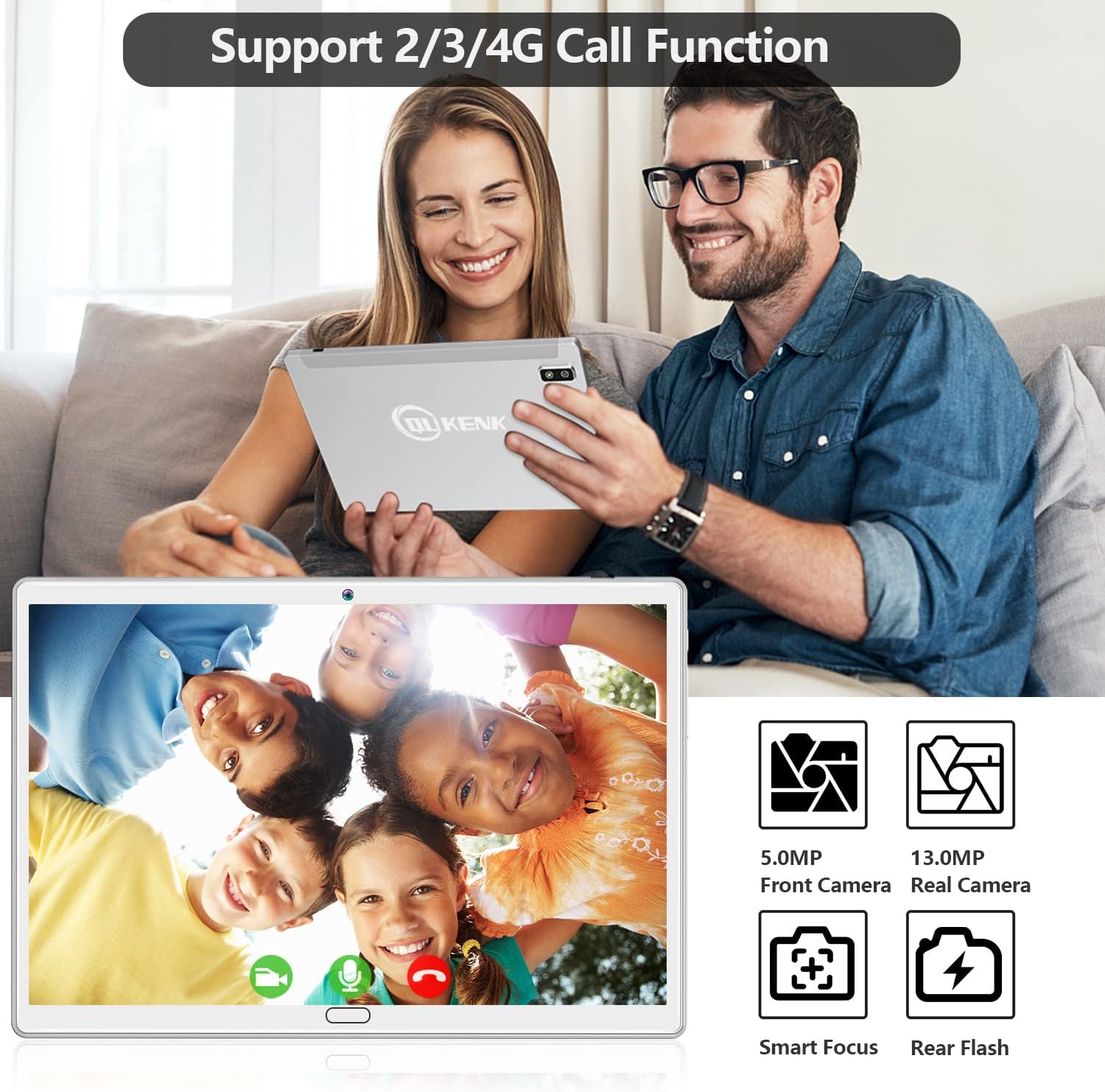 • [2023 Newest 4G Tablet] Qukenk 2 in 1 Tablet PC is equipped with the latest Android 11.0 system. Supports 4G frequency band calling function, 2.4GHz WiFi connection. Whether you are on the go, at work, or at home, You can use the tablet to surf the Internet smoothly and stably. [Please note: SIM card not included. Please refer to the product description for SIM card network support]