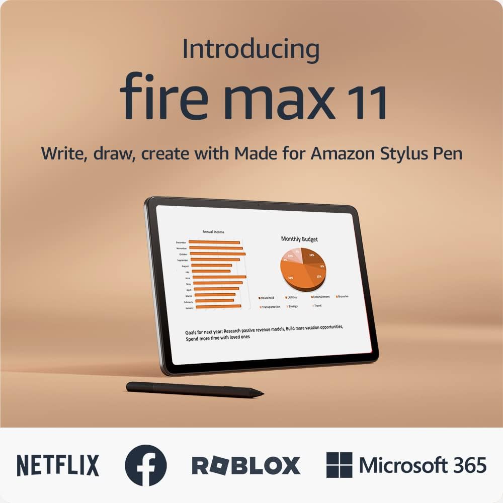 • VERSATILE FOR WORK AND PLAY — Optional Fire Max 11 Keyboard Case and/or Made for Amazon Stylus Pen (sold separately). Try Microsoft 365 Personal for 3 months (auto renews for $6.99/month after free trial, eligibility and terms apply).