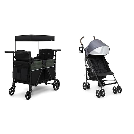 Delta Children Jeep Aries 2-Seater Stroller Wagon and 365 Plus Lightweight Stroller Bundle