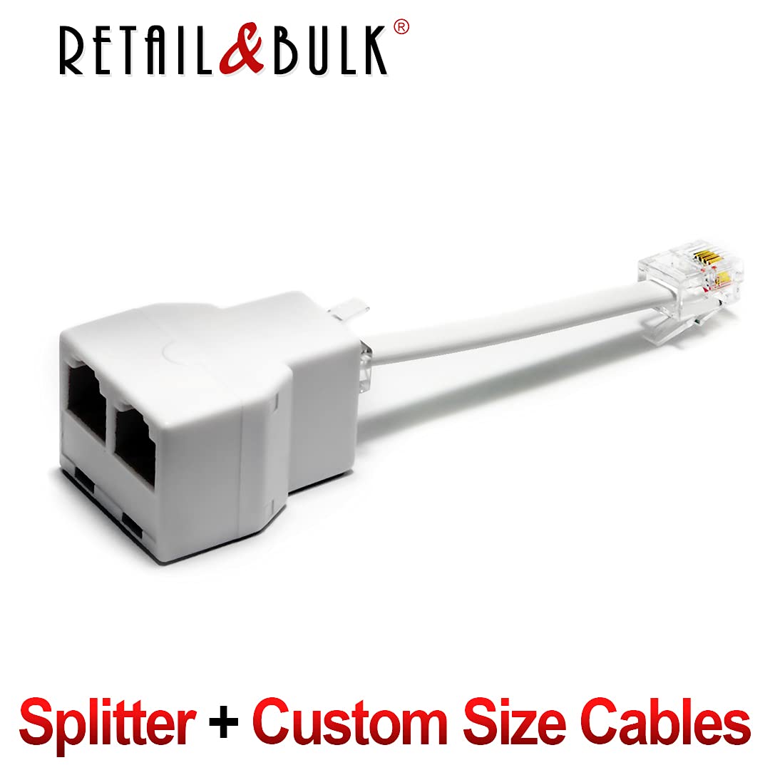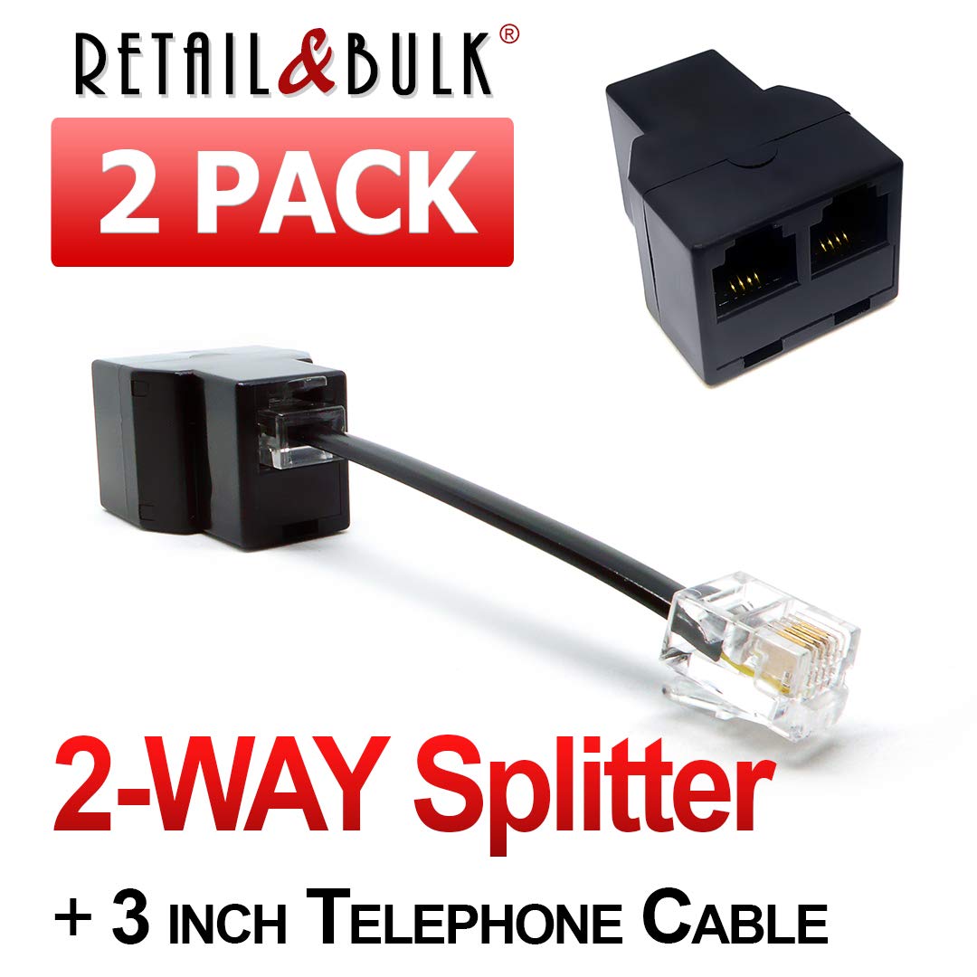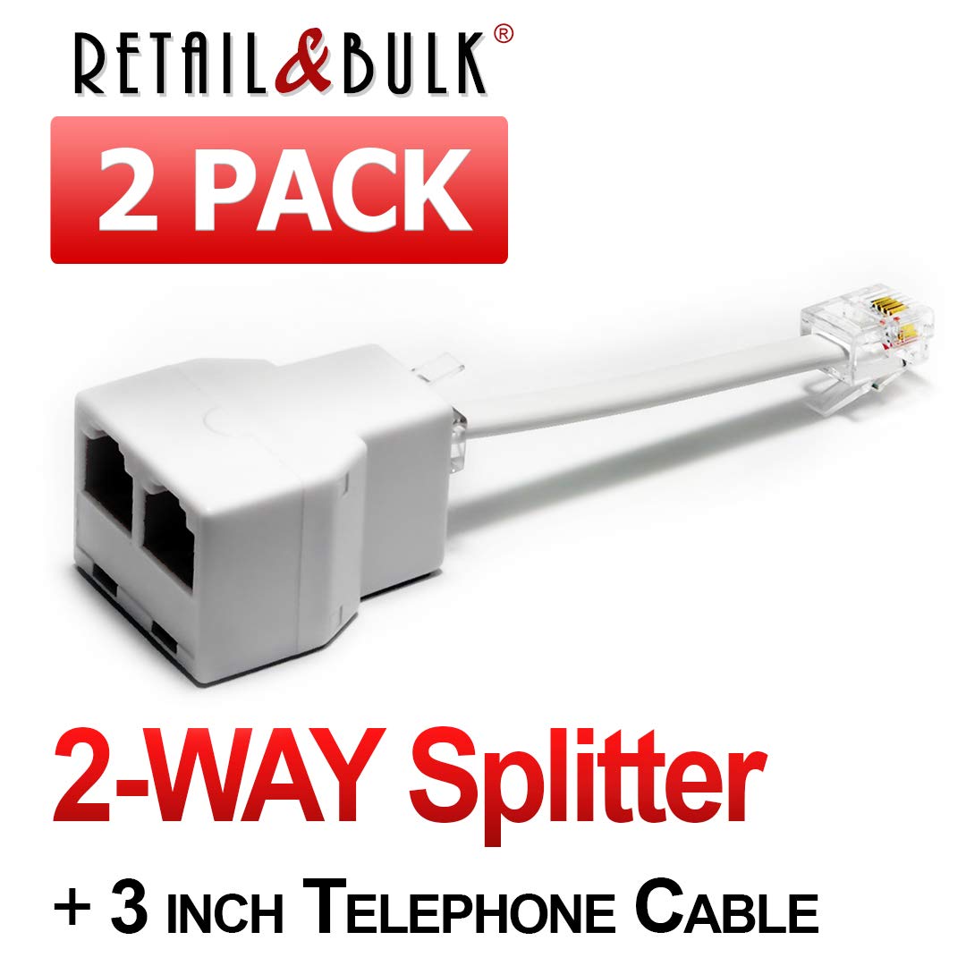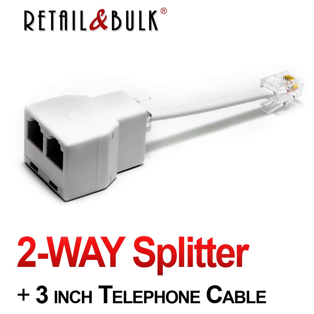 RetailAndBulk Phone Jack Splitter for Landline Telephone RJ11 6P4C 2 Way Adapter (1 Splitter + 3 Inch Cable)