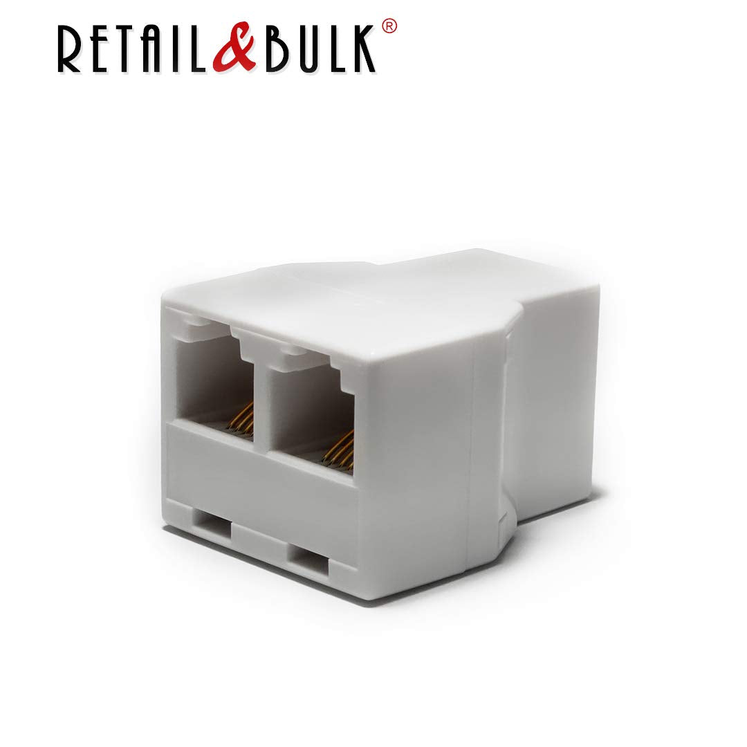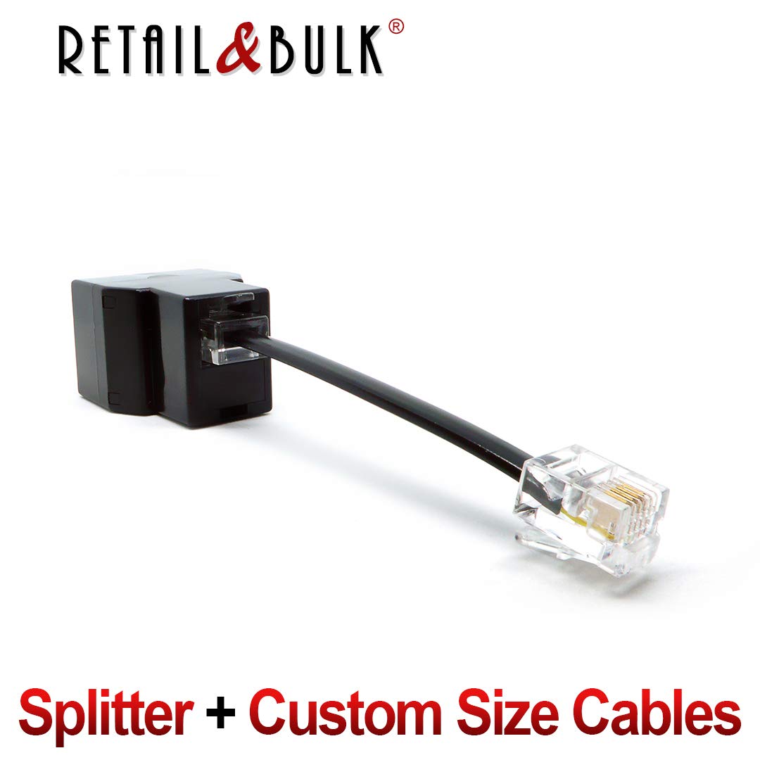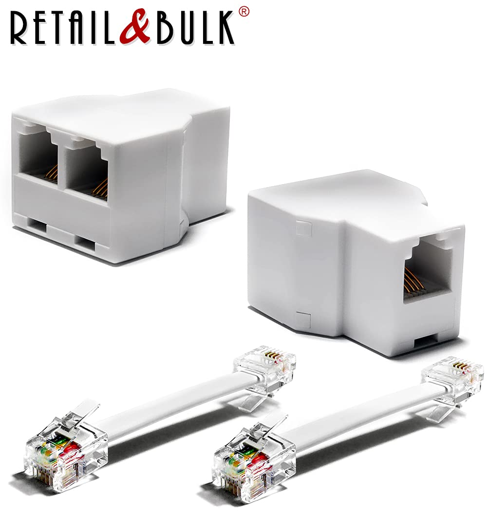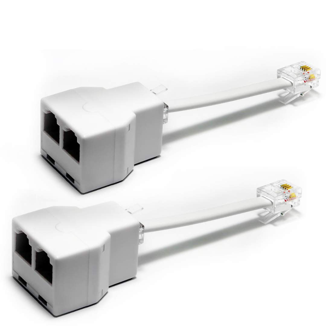 RetailAndBulk Phone Jack Splitter for Landline Telephone RJ11 6P4C 2 Way Adapter (1 Splitter + 3 Inch Cable)