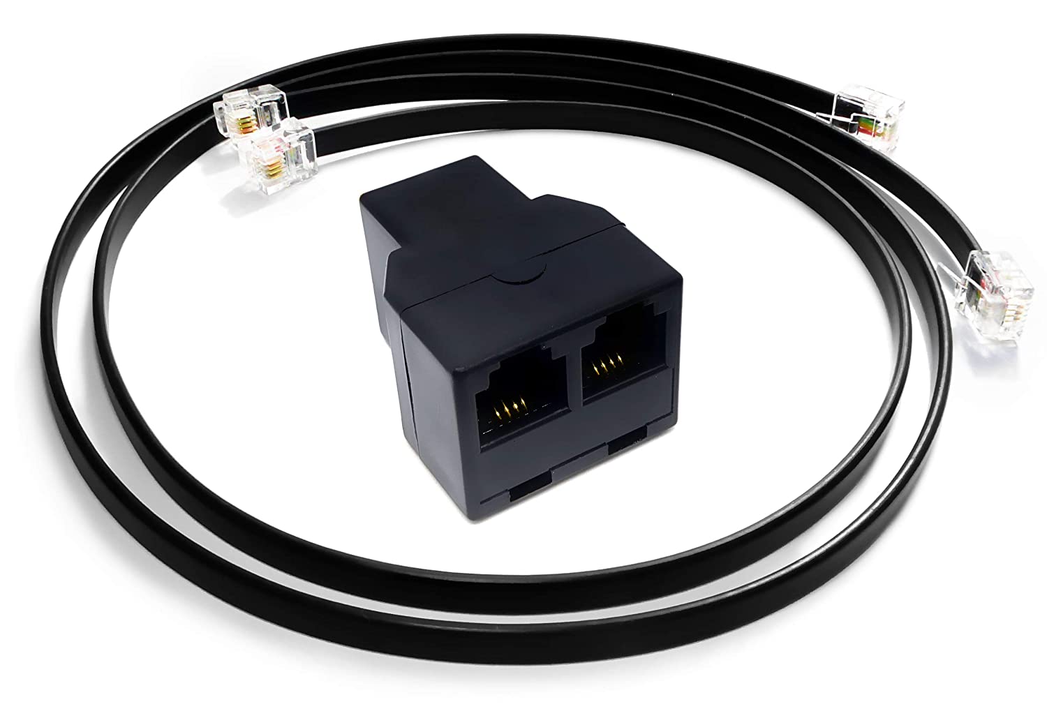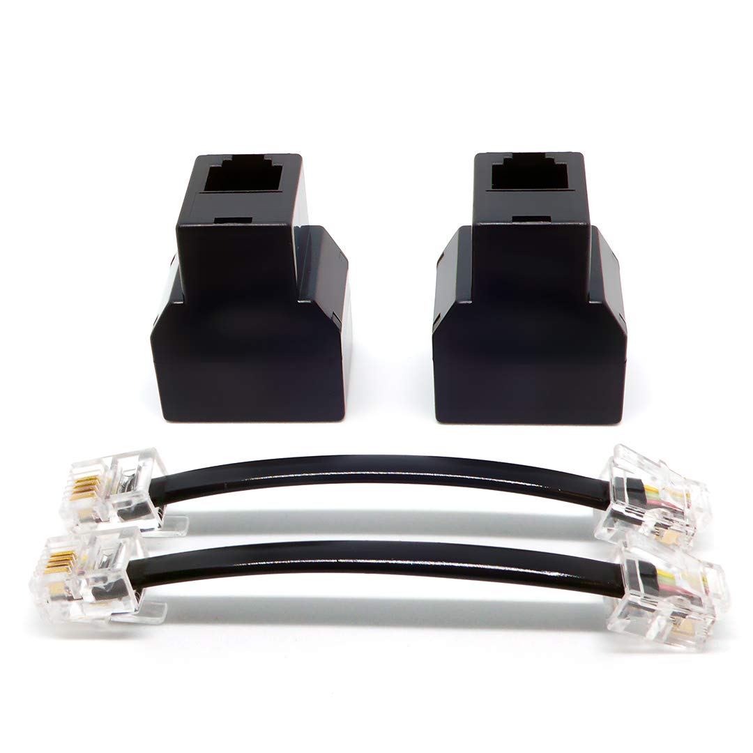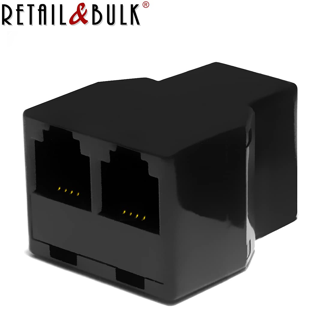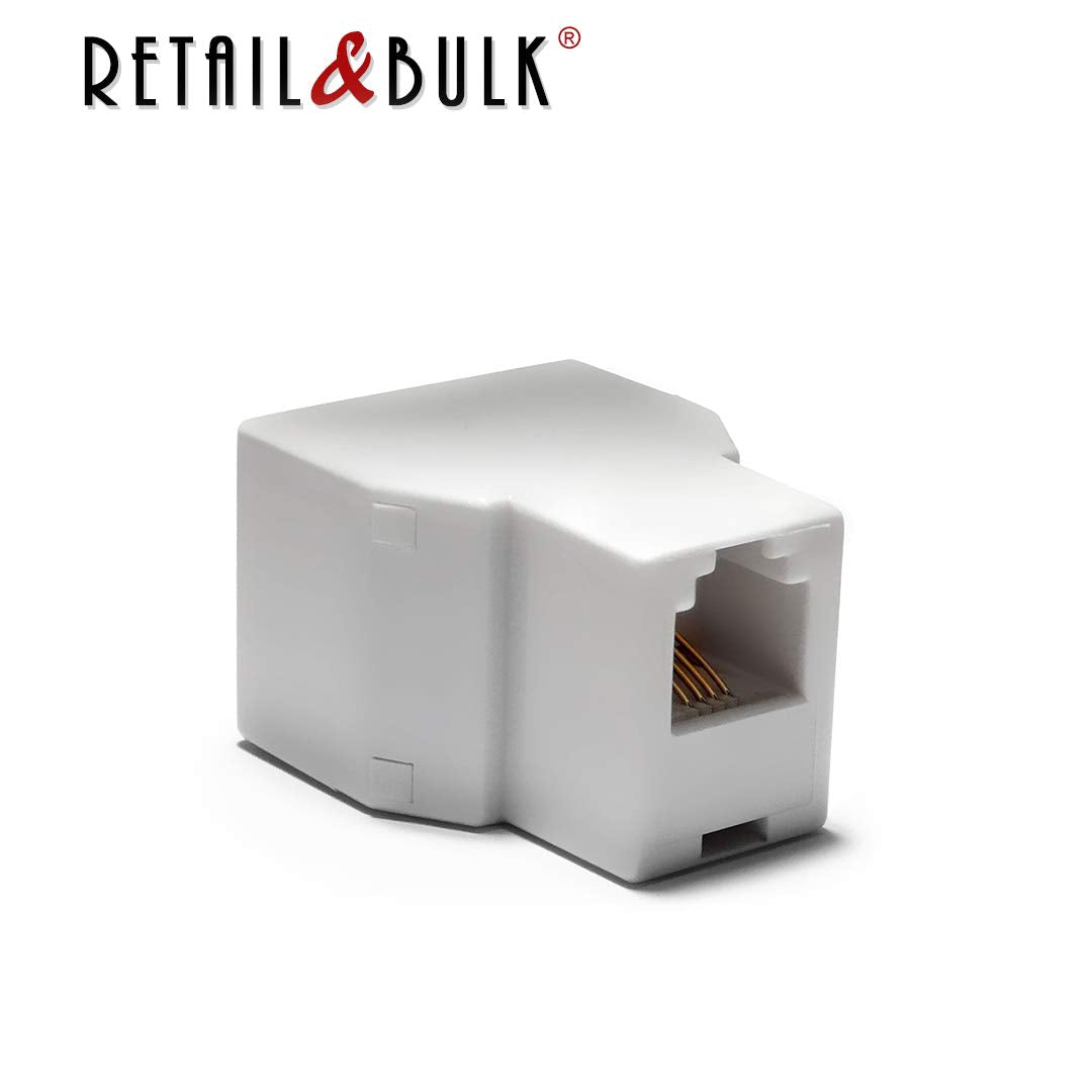RetailAndBulk Phone Jack Splitter for Landline Telephone RJ11 6P4C 2 Way Adapter (1 Splitter + 3 Inch Cable)