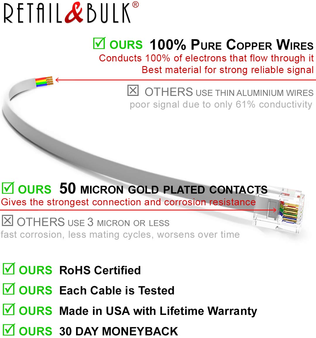 ✅ Four-conductor (6P4C) design allows for operation of a 2-line phone