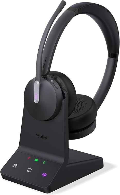 Yealink WH64 DECT & Bluetooth Dual Teams Wireless Headset, 606 ft Range On Ear Work Headphones with 3X Noise Cancelling Mic, 32H Talk Time, Ringer, Office Headsets for Desk IP Phone, PC, Cellphone