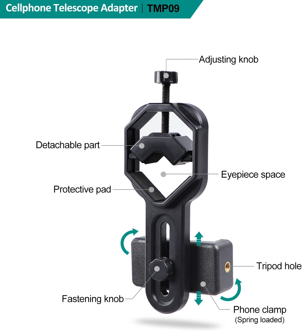VANKEY Cellphone Telescope Adapter Mount, Universal Phone Scope Mount, Work with for Spotting Scope, Telescope, Microscope, Monocular, Binocular, for iPhone, Samsung, HTC, LG and More