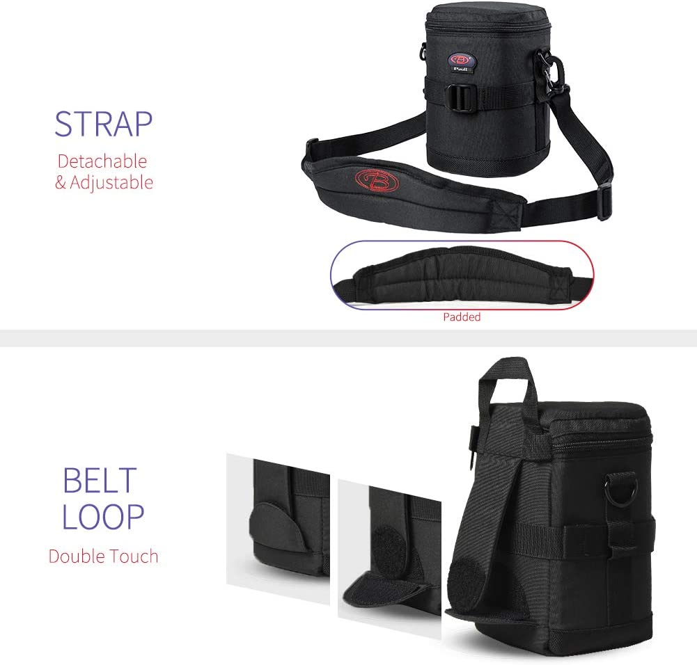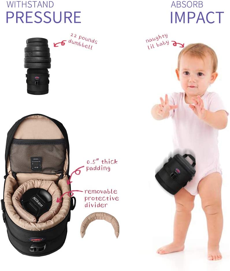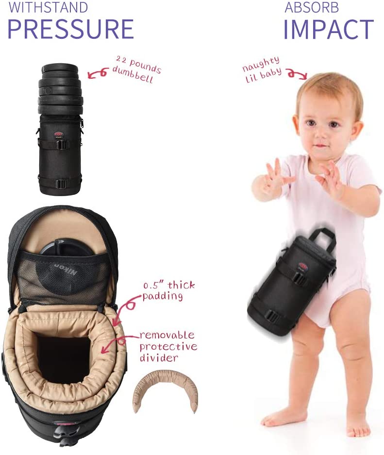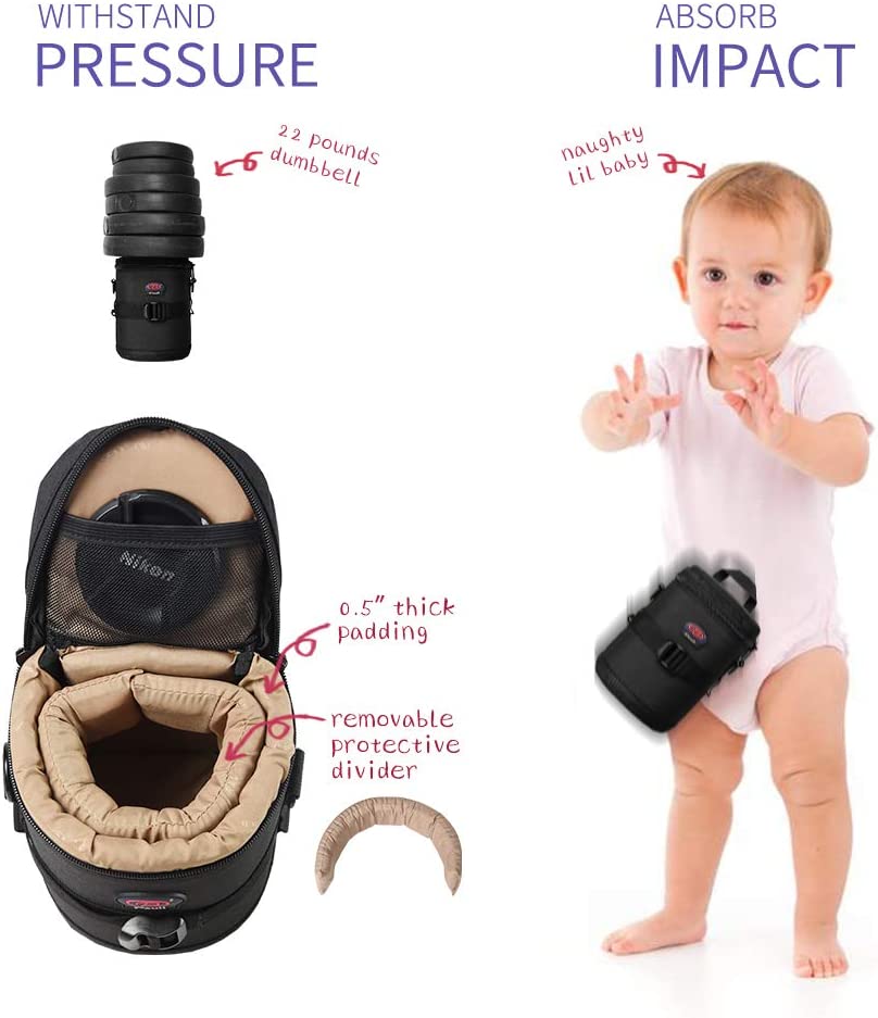 • Good Protection--Removable devider attached in the len case to fix your lens from shaking, and the lining is 0.5 inch thick makes the lens pouch anti-fall and anti-pressure