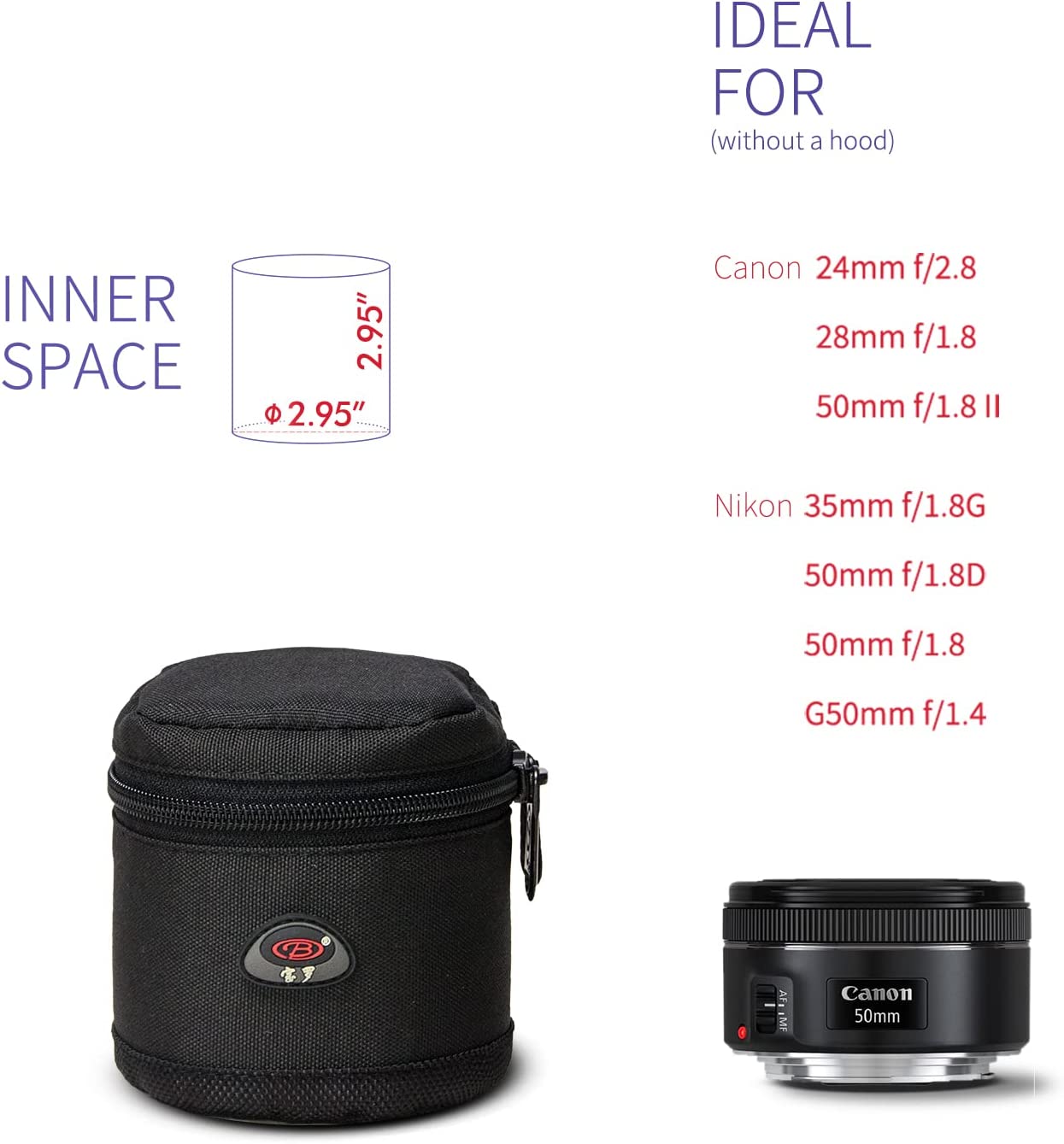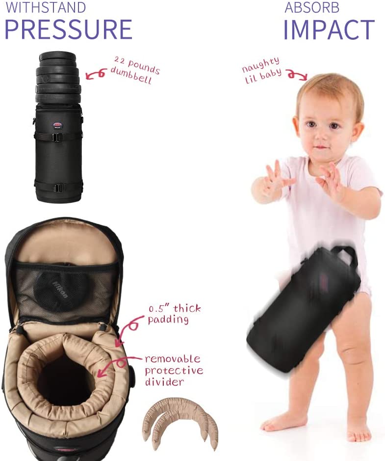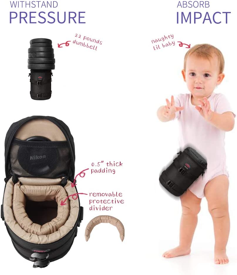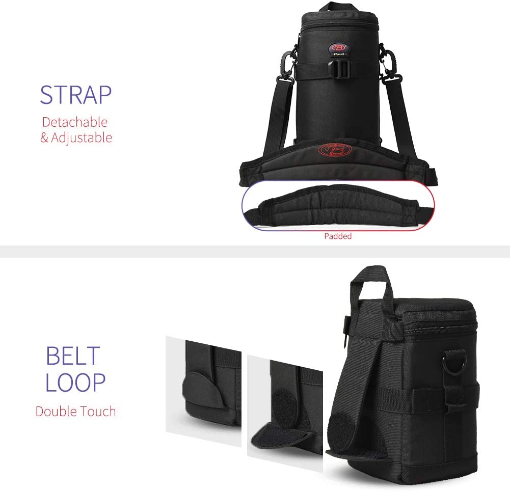 • Good Protection--Removable devider attached in the len case to fix your lens from shaking, and the lining is 0.5 inch thick makes the lens pouch anti-fall and anti-pressure