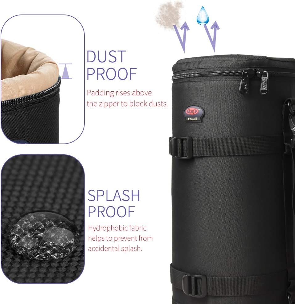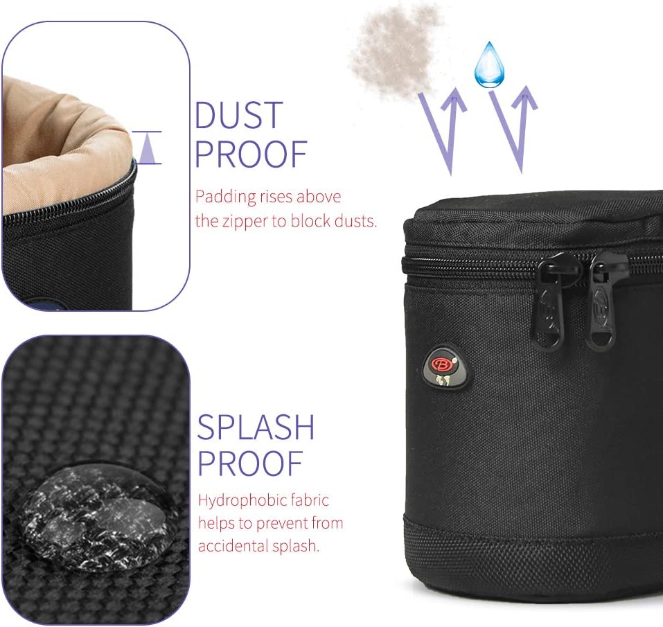 • Dust-Proof--The raised lining design prevents dust from entering the zipper connection which offers a relatively closed environment for your lens and protect it.