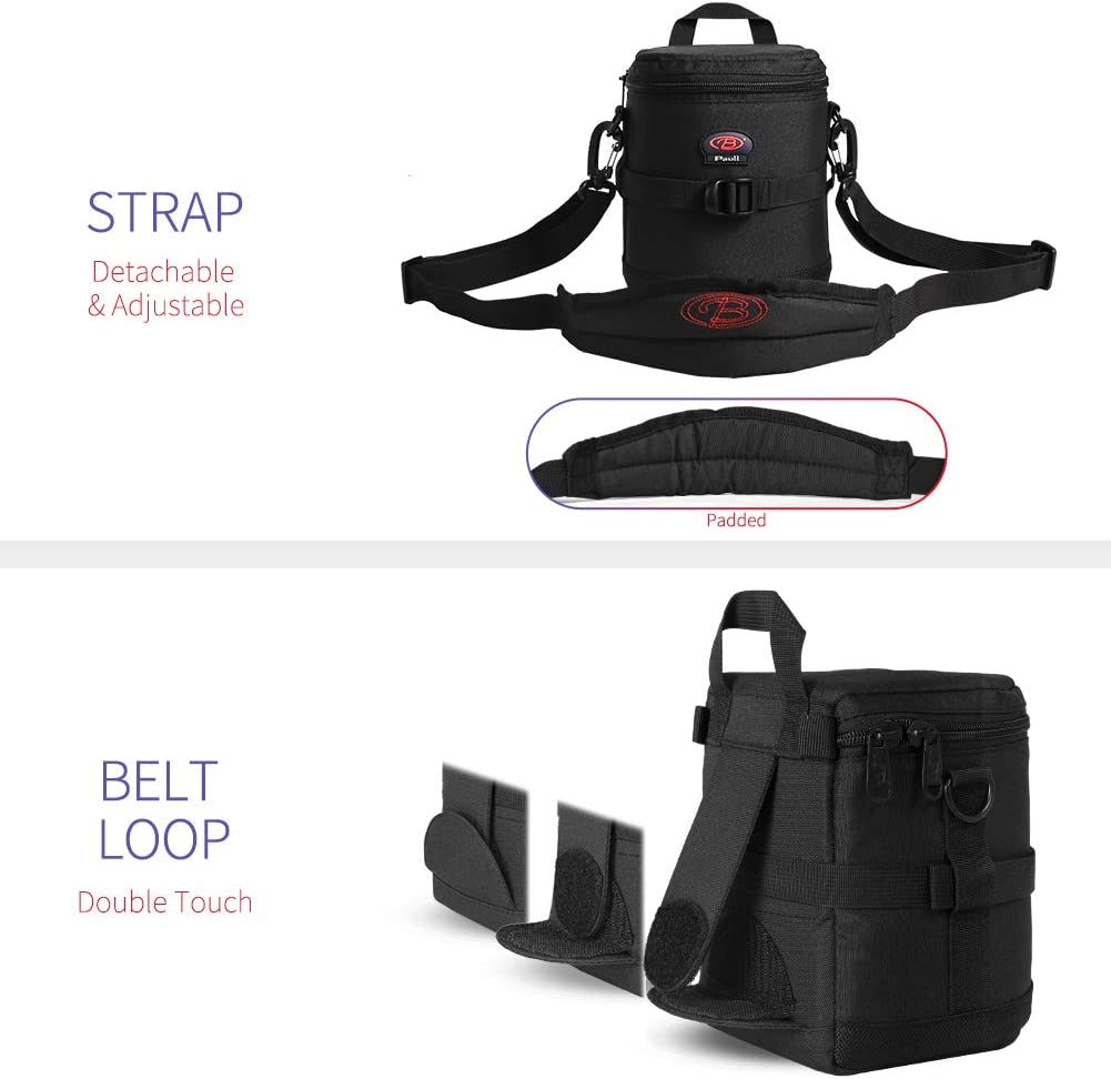 BPAULL Camera Lens Case DSLR Camera Lens Bag Fits for Canon Nikon Pentax Sony Olympus Panasonic and Other Camera Lens