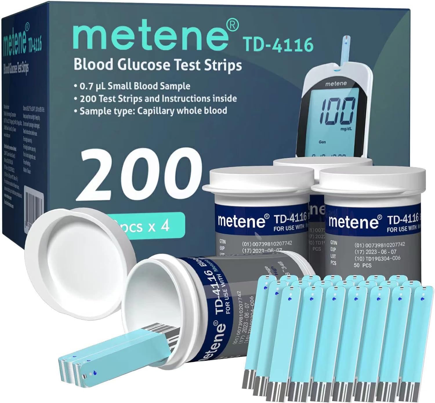 Metene TD-4116 Blood Glucose Test Strips, 200 Count Test Strips for Diabetes, Use with metene TD-4116 Blood Glucose Monitor Only