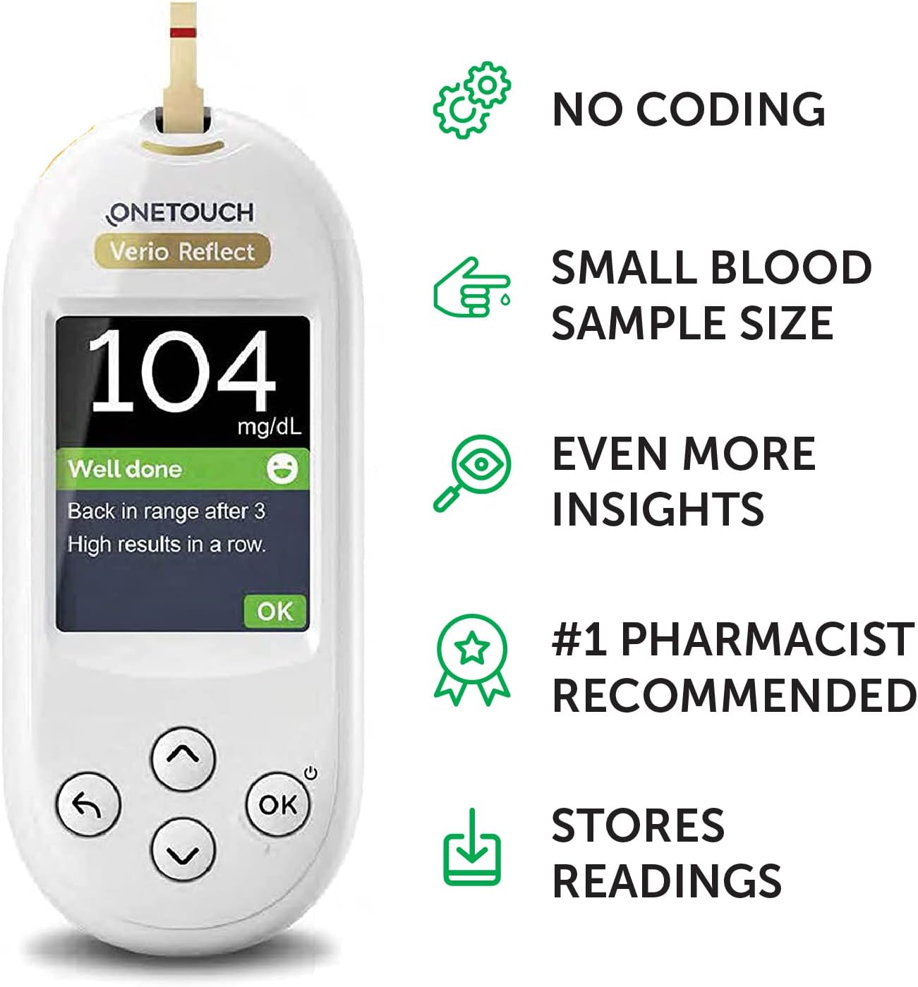 • Save Time, No Coding Required: No need for coding with your blood glucose meter. Save time & use these blood sugar test strips right out of the box with the OneTouch Verio Reflect or OneTouch Verio Flex Blood Glucose Monitoring System