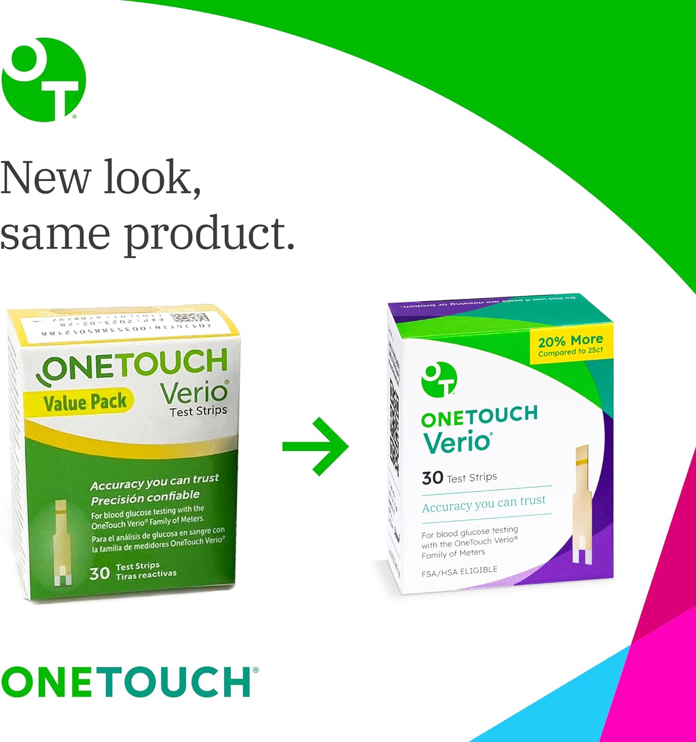 OneTouch Verio Test Strips for Diabetes Value Pack - 90 Count | Diabetic Test Strips for Blood Sugar Monitor | at Home Self Glucose Testing | 3 Packs, 30 Test Strips Per Pack