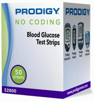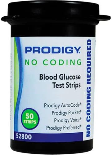 Prodigy 52800 No Coding Blood Glucose Test Strips, Box of 50 Strips