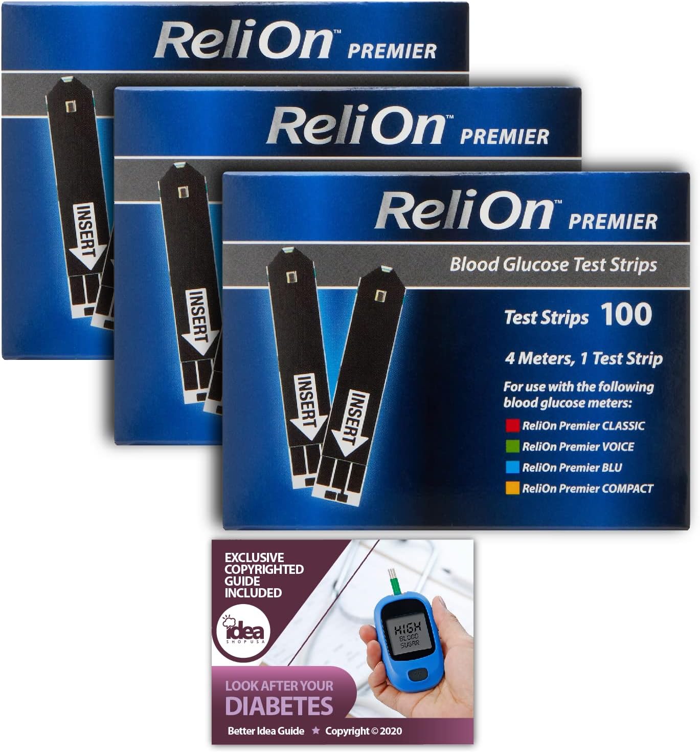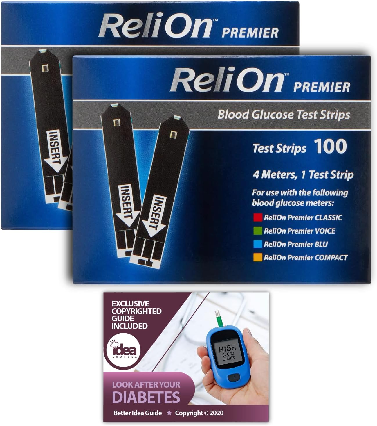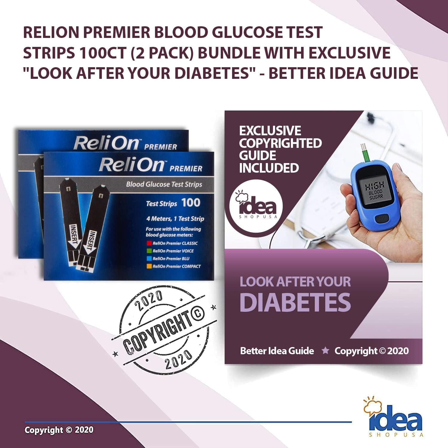 ReliOn Premier Blood Glucose Test Strips 100Ct Bundle with Exclusive "Look After Your Diabetes" - Better Idea Guide (2 Items)