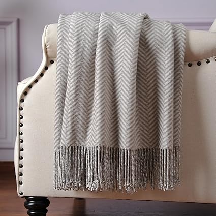 CUDDLE DREAMS Silk Throw Blanket with Fringe, Pure Mulberry Silk, Naturally Soft, Breathable (Herringbone Gray)