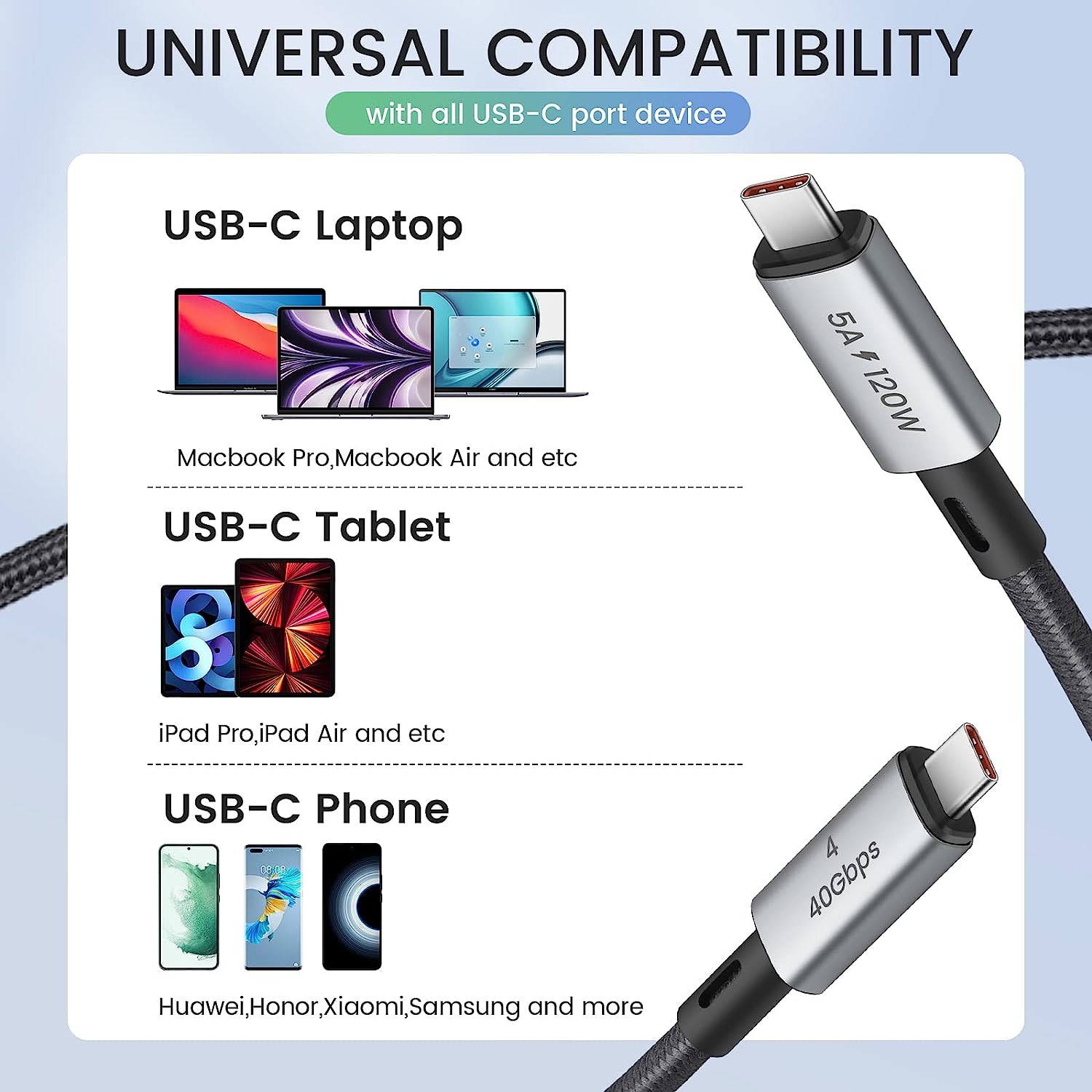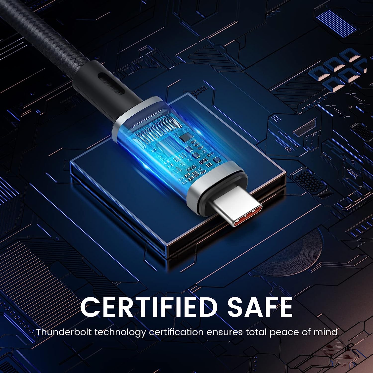 • ▲[100% USB-C Compatible]: The Thunderbolt 4 Cable fully supports all the awesome features of Thunderbolt 4 and USB4, while also being fully backward compatible with Thunderbolt 3 and USB 3 hosts and devices. A plug and play safe solution Compatible with any Mac, PC, iPad, Chromebook, Surface tablet or ny other device, display, or power supply with Thunderbolt 3, Thunderbolt 4, USB-C, or USB4 port.