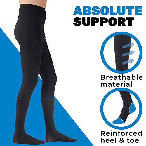 Made in USA - Graduated Opaque Compression Pantyhose 20-30mmHg for Men - Firm Compression Tights for Circulation - High Waist Support Stockings Hose - Beige, Large