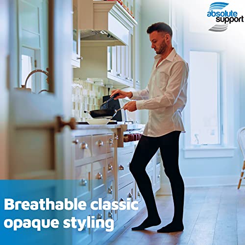 Details: Masculine, full length garment, for treatment of upper and lower leg circulatory problems. Features a Dress Sock Look/ Casual Sock look and feel. Surgical weight compression. Two way stretch design provides extra comfort and makes them easier to get on. Built with a men's brief top, with a fly opening. Helps prevent and relieve moderate to severe varicose veins for post-surgical and post-sclerotherapy treatment to help prevent the reappearance of varicose and spider veins. Helps with the management of active ulcers and manifestations of post-thrombotic syndrome. Absolute support delivers physician-prescribed elastic compression therapy guaranteed just like the big name brands, we take 4-6 compression measurements at precise intervals between the ankle and end of garment.