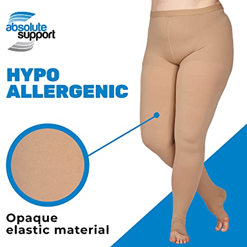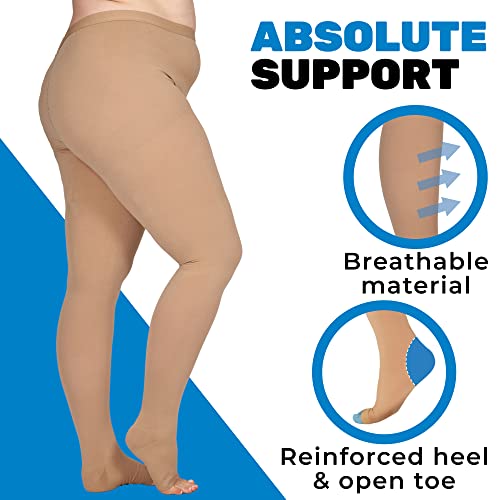 Plus Size Compression Pantyhose for Women 20-30mmHg with Open Toe - Extra Large Womens Opaque Compression Tights for Swelling, Thrombosis,Achilles Tendon, Diabetic - Beige, 7X-Large