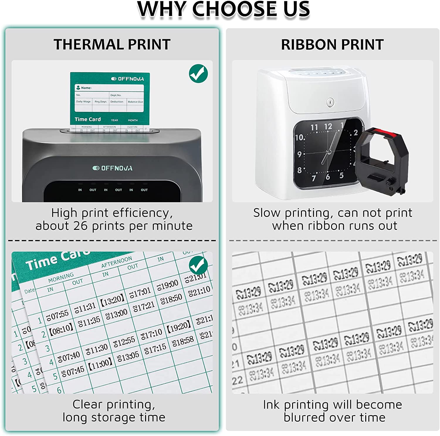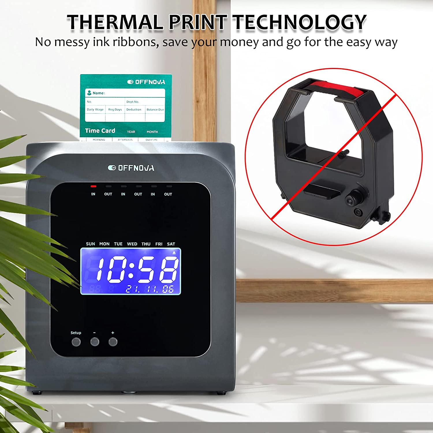 OFFNOVA Im·Pulse Thermal Time Clock for Employees Small Business, No Ink Ribbons or Network Needed, in/Out Time Attendance Machine with 50 Time Cards
