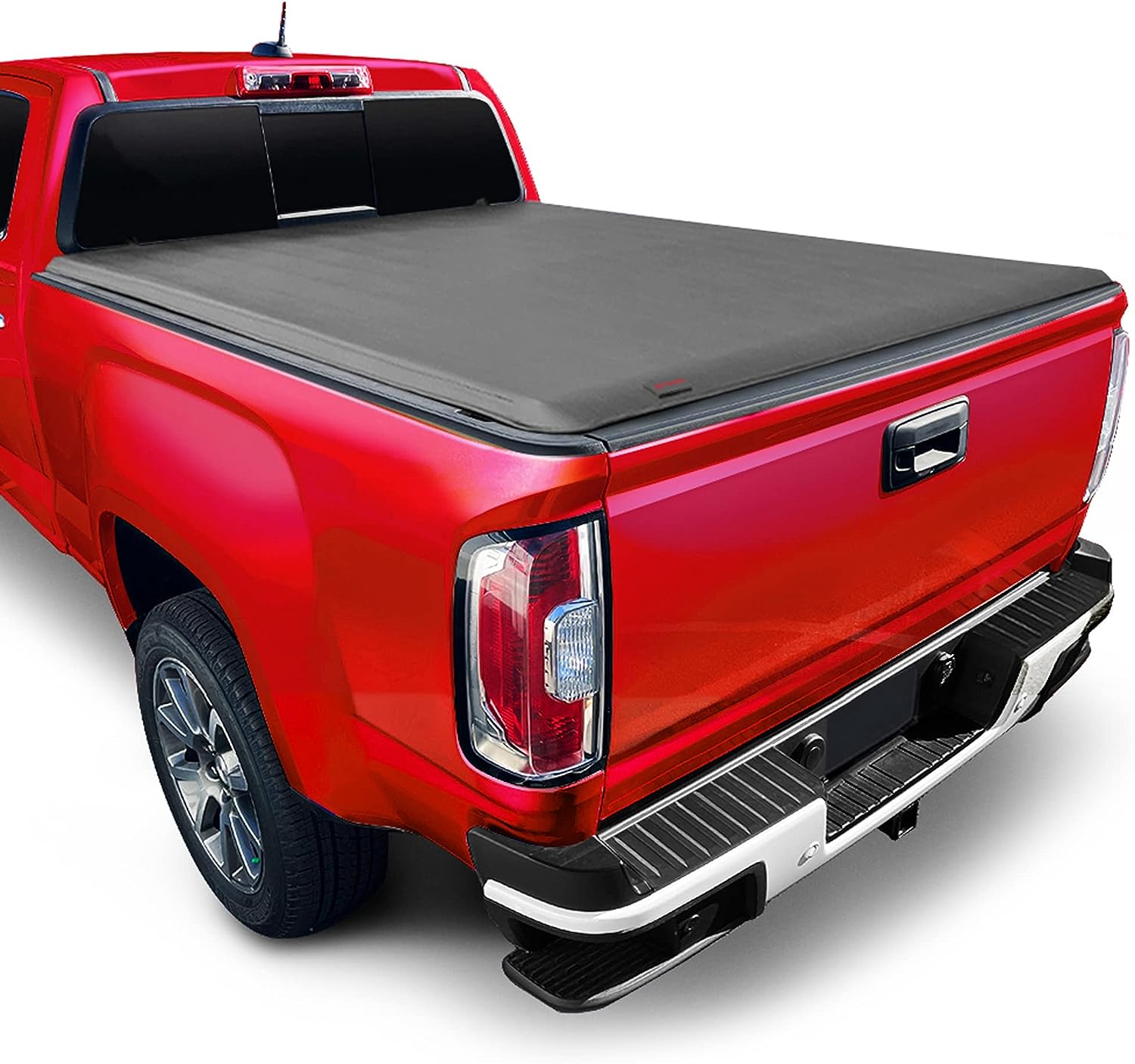• [DESIGN] US Design Patented. Cover is dual-coated and made out of heavy duty 24oz. marine-grade vinyl, with built-in horizontal crossbars that offer support when cover is lying flat; and roll up with the tarp to provide full bed access when in need. Also comes with aircraft-grade aluminum side rails, and stainless steel clamps for mounting to the truck bed.