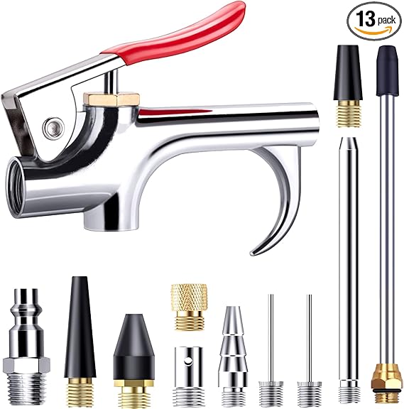 13 Pcs 2-Way Connection Air Nozzle Blow Gun Set, Air Nozzle Kit with 1/4 in Standard Quick Fitting and 8 Air Nozzles, Air Compressor Accessories for Air Inflation and Dedusting