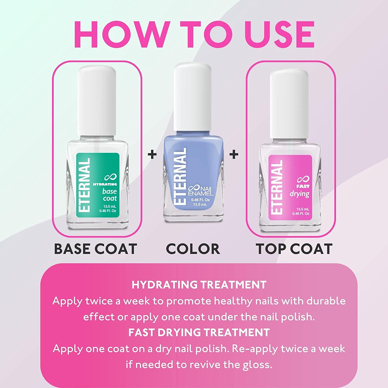 Eternal Base Coat & Top Coat Nail Polish Set - 13.5mL hydrating Base Coat Primer & Fast Drying Top Coat for Nail Treatment & Strengthening of Damaged Nails | Quick Dry No UV light Coating (2 units)