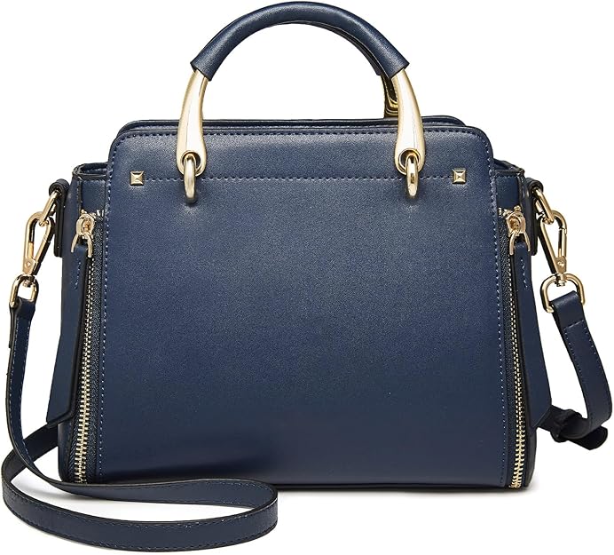 FOXER Leather Handbags for Women, Genuine Leather Ladies Top-handle Bags with Adjustable Shoulder Strap Women's Crossbody Bag Womens Real Cowhide Satchels Leather Messenger Tote Bags(Dark Blue)
