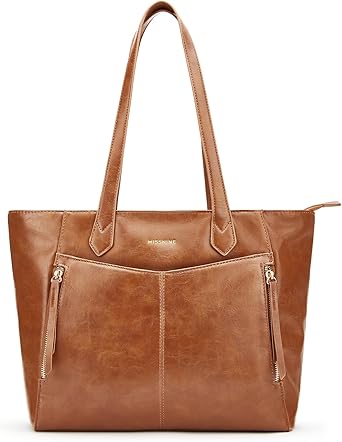 Missnine Tote Bag for Women with Zipper, Leather Purse and Handbags, Ladies Top-handle Shoulder Bags for Work, Casual, Travel