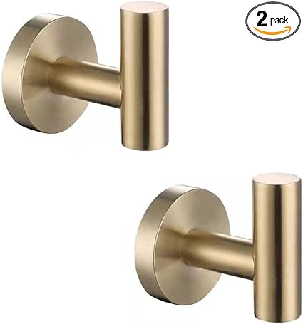 Bath Towel Hook Wall-mounted SUS 304 Stainless Steel Coat Hook for Bathroom Kitchen Livingroom Garage Hotel Brushed Finish 2 Pcs (Brushed Gold)