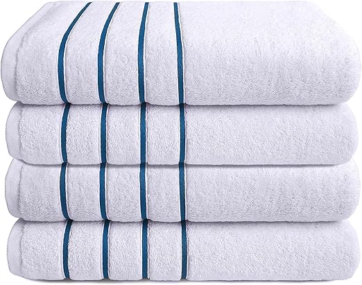 4 Piece Striped Bath Towel Set, 100% Turkish Cotton Plush, High Absorbent, Super Soft, Quick Dry Turkish Bath Towel Set for Bathroom Oxford Blue
