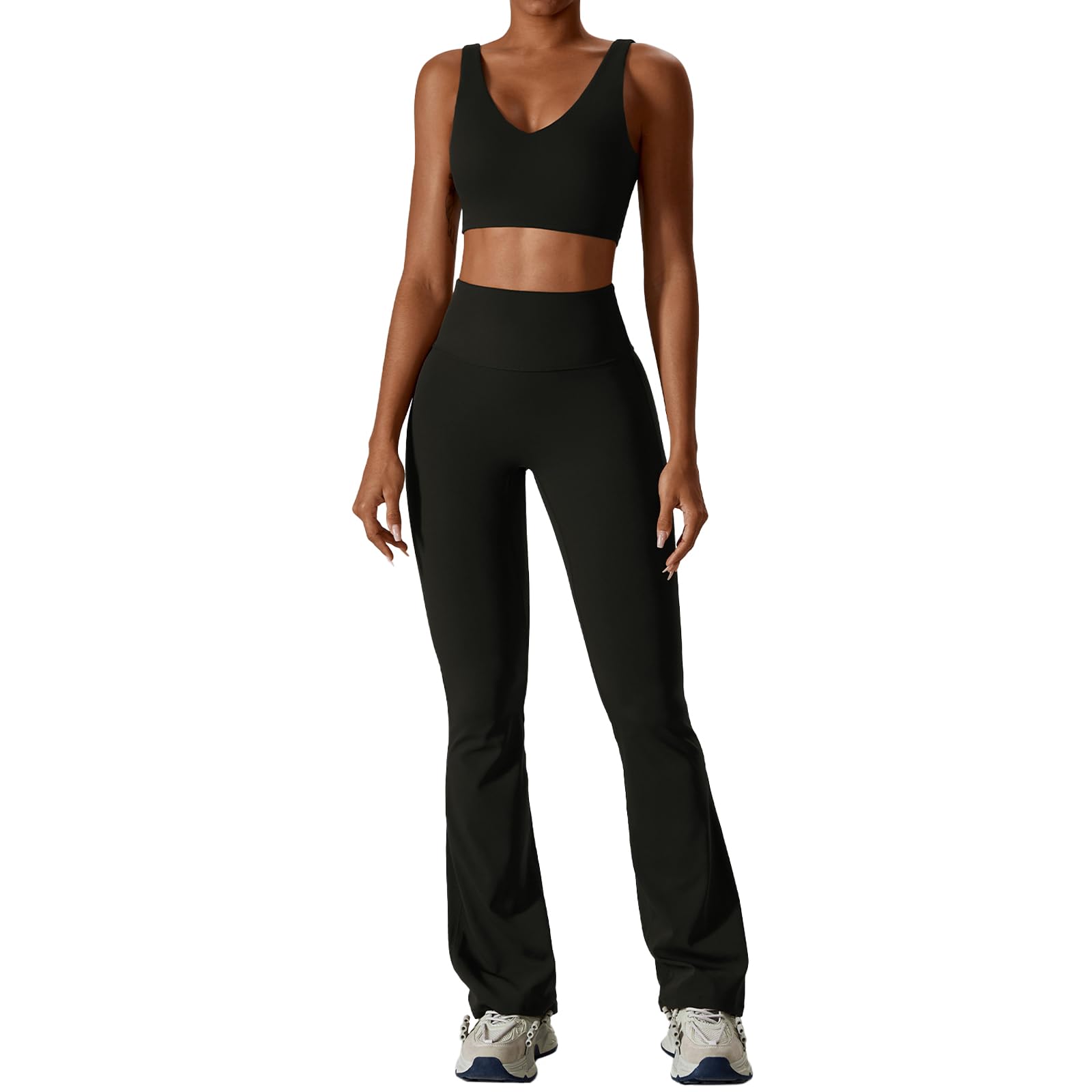 Details: ❤ ❤Women's Workout V Neck Sports Bra Tank Top High Waist Bootcut Yoga Pants Flared Leggings 2 Piece Yoga Outfits ❤ ❤