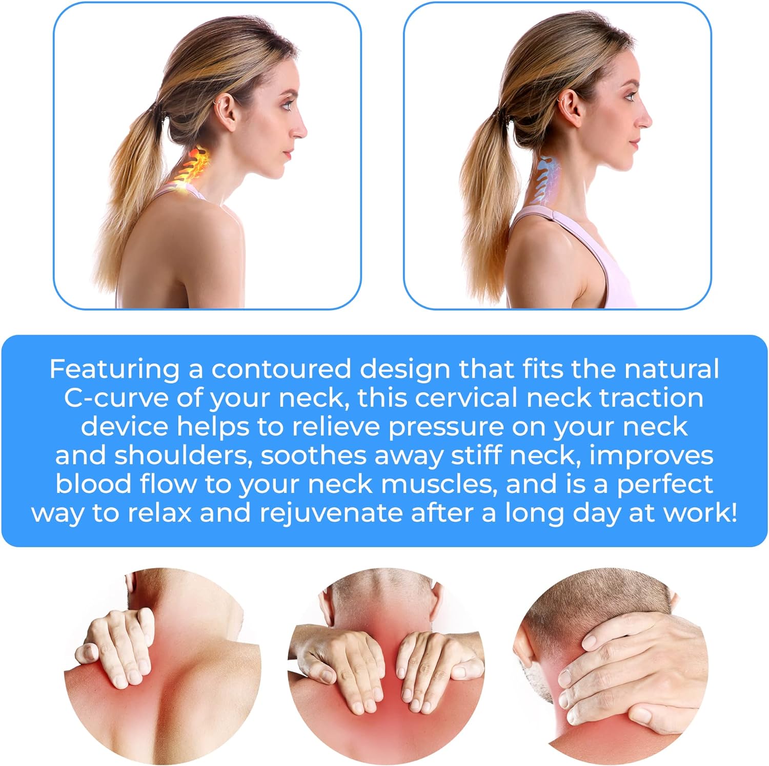 • Effortless Neck and Shoulder Pain Relief - Featuring a contoured design that fits the natural C-curve of your neck, this cervical neck traction device helps to relieve pressure on your neck and shoulders, soothes away stiff neck, improves blood flow to your neck muscles, and is a perfect way to relax and rejuvenate after a long day at work!