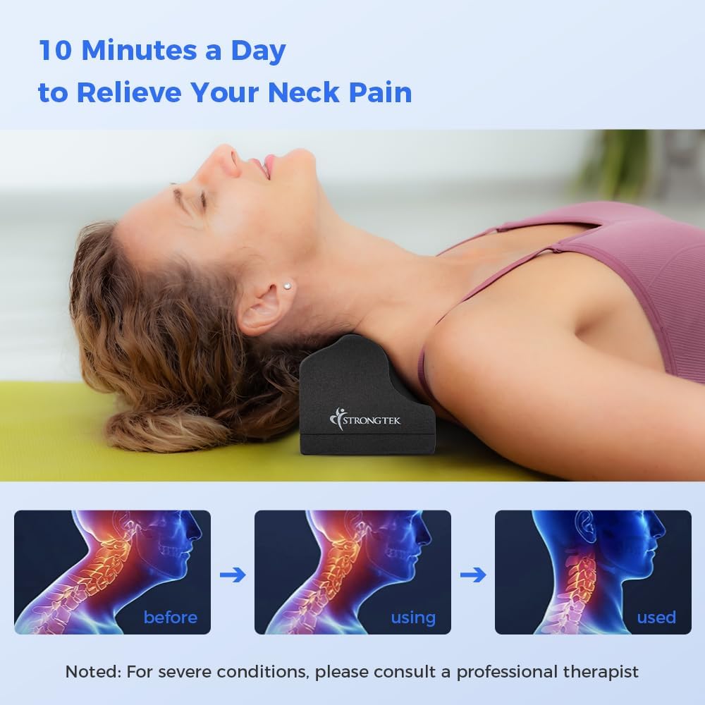 StrongTek Cervical Orthotic Neck Stretcher for Head, Shoulder, and Spine Alignment, Cervical Traction Block for Physical Therapy and TMJ Pain Relief, Chiropractic Pillow, Neck and Shoulder Relaxer