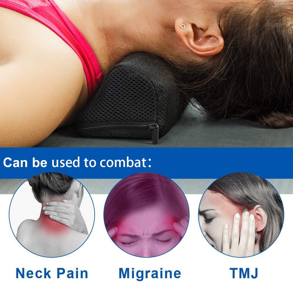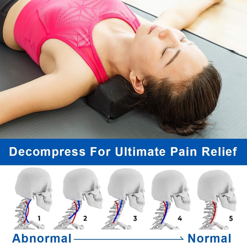 • POSTURE SUPPORT WITH GENTLE STRETCHING: A smarter, more supportive design. Our neck cervical stretcher helps gently position the head to alleviate pressure on the spine at the base of the neck which can improve posture, relieve back pain, focus, and sleep.