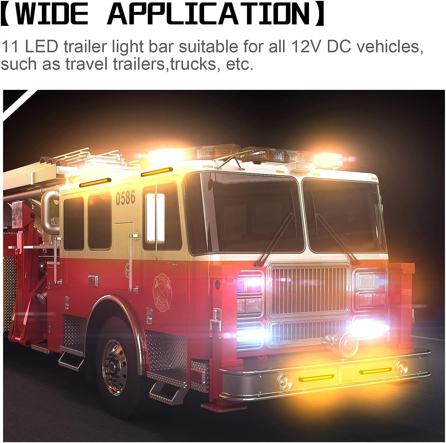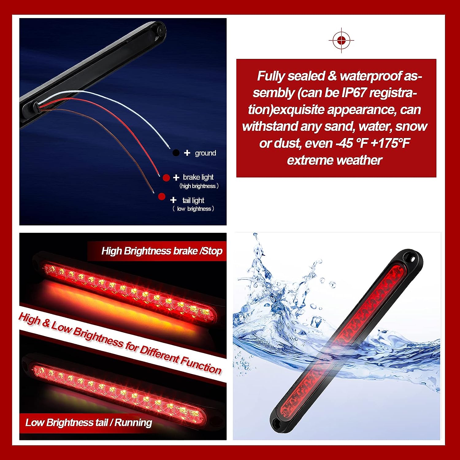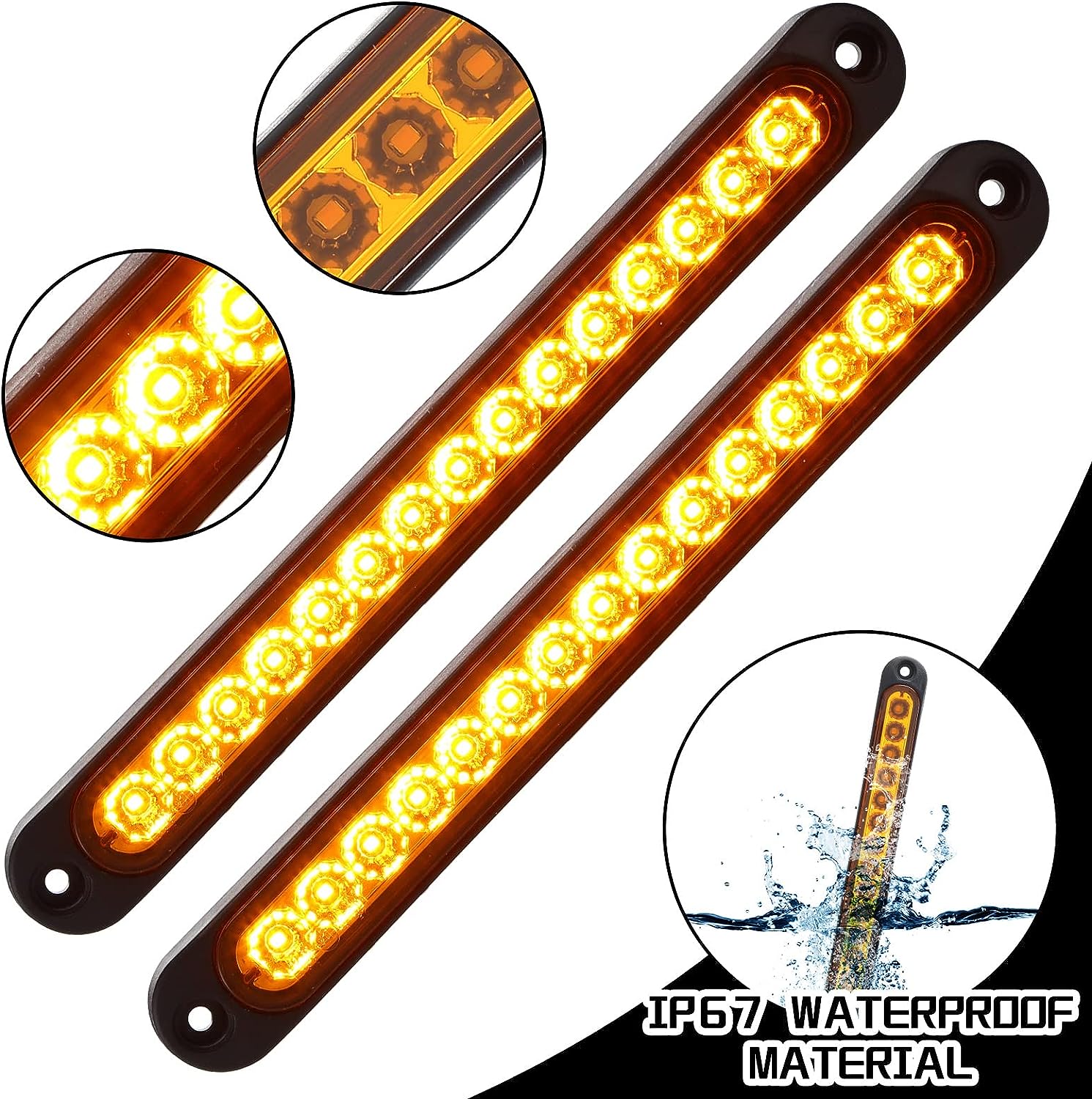 2 Pieces 10 Inch 15 LED Trailer Tail Light Bar Stop Turn Tail Lights Assembly Third Brake Strip 9 to 30-volt Trailer Identification Light for Marine Boats Trucks Pickups (Amber)