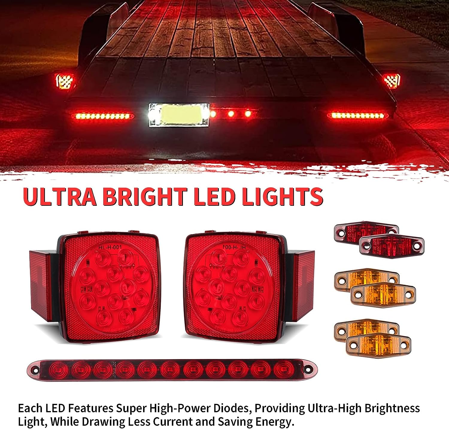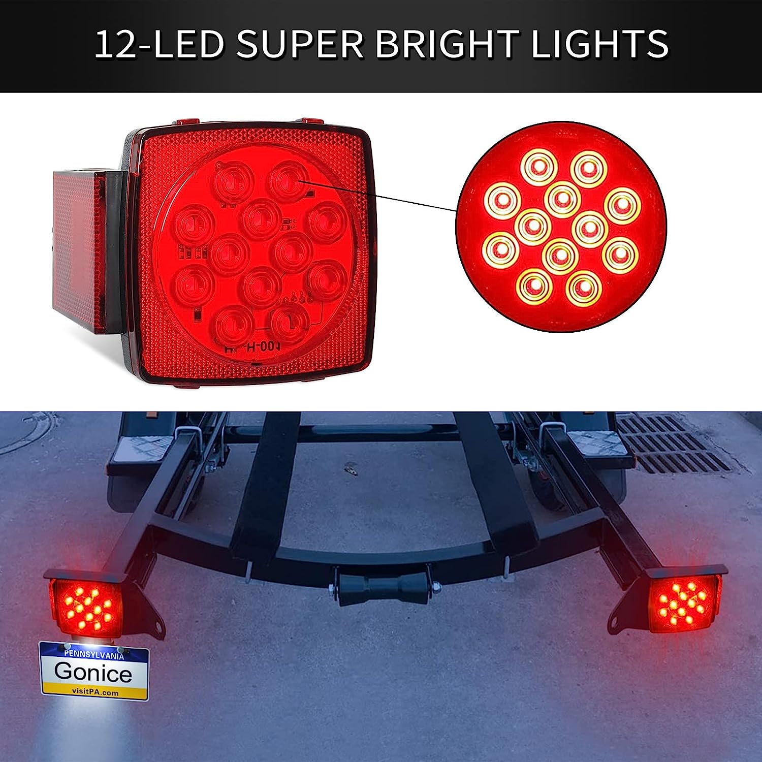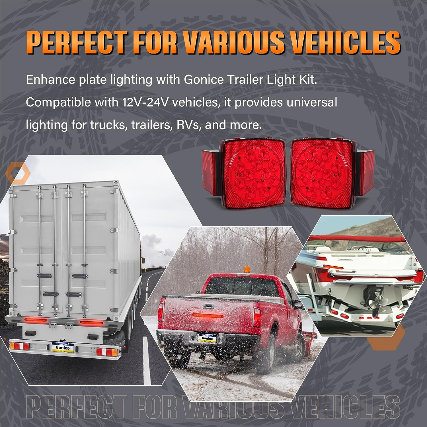 Gonice 12V LED Trailer Light Kit, Super Bright Submersible Boat Trailer Lights, Utility Brake Turn Tail Lights for Camper Truck, RV Snowmobile, DOT Compliant, IP68 Waterproof