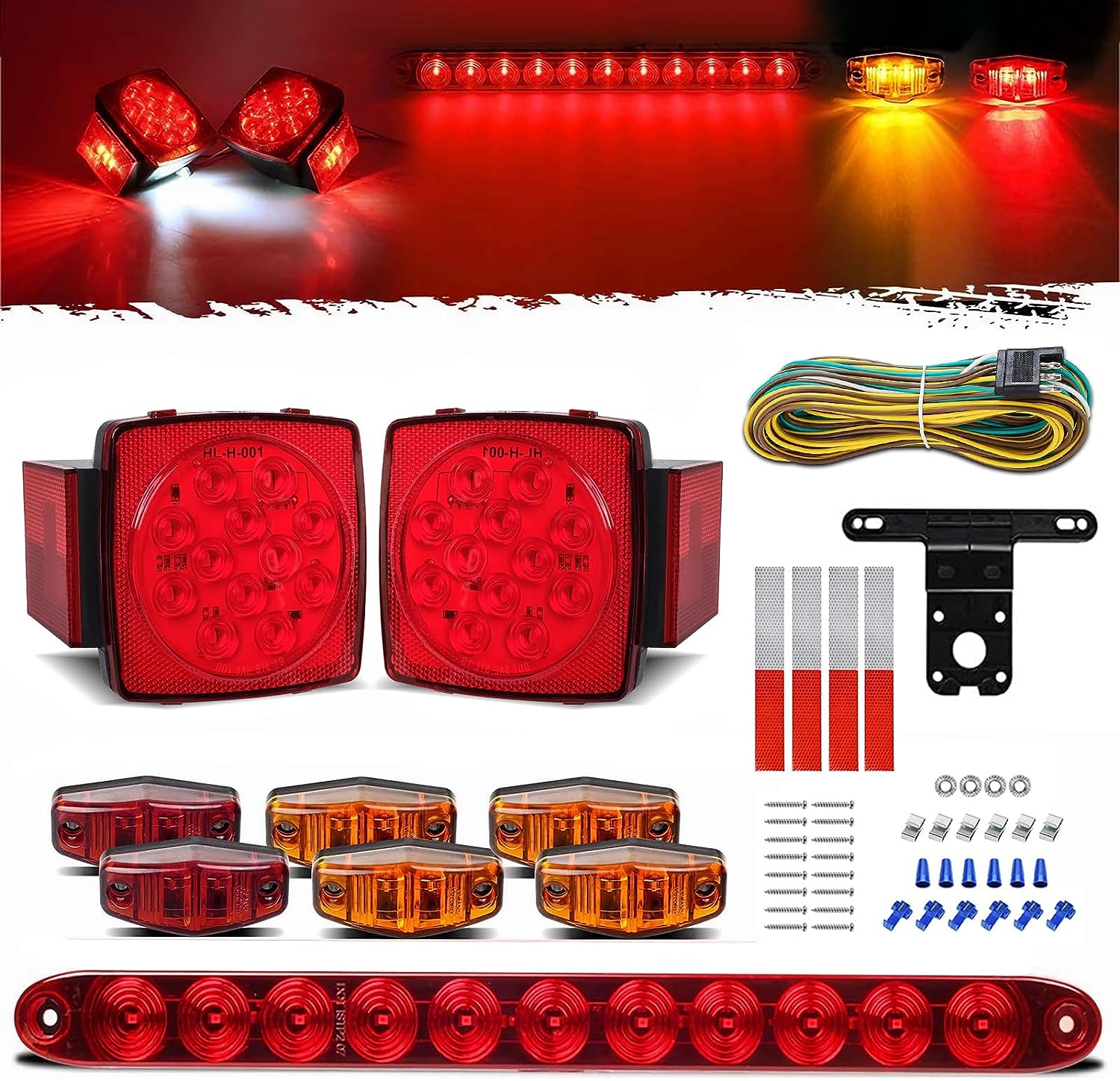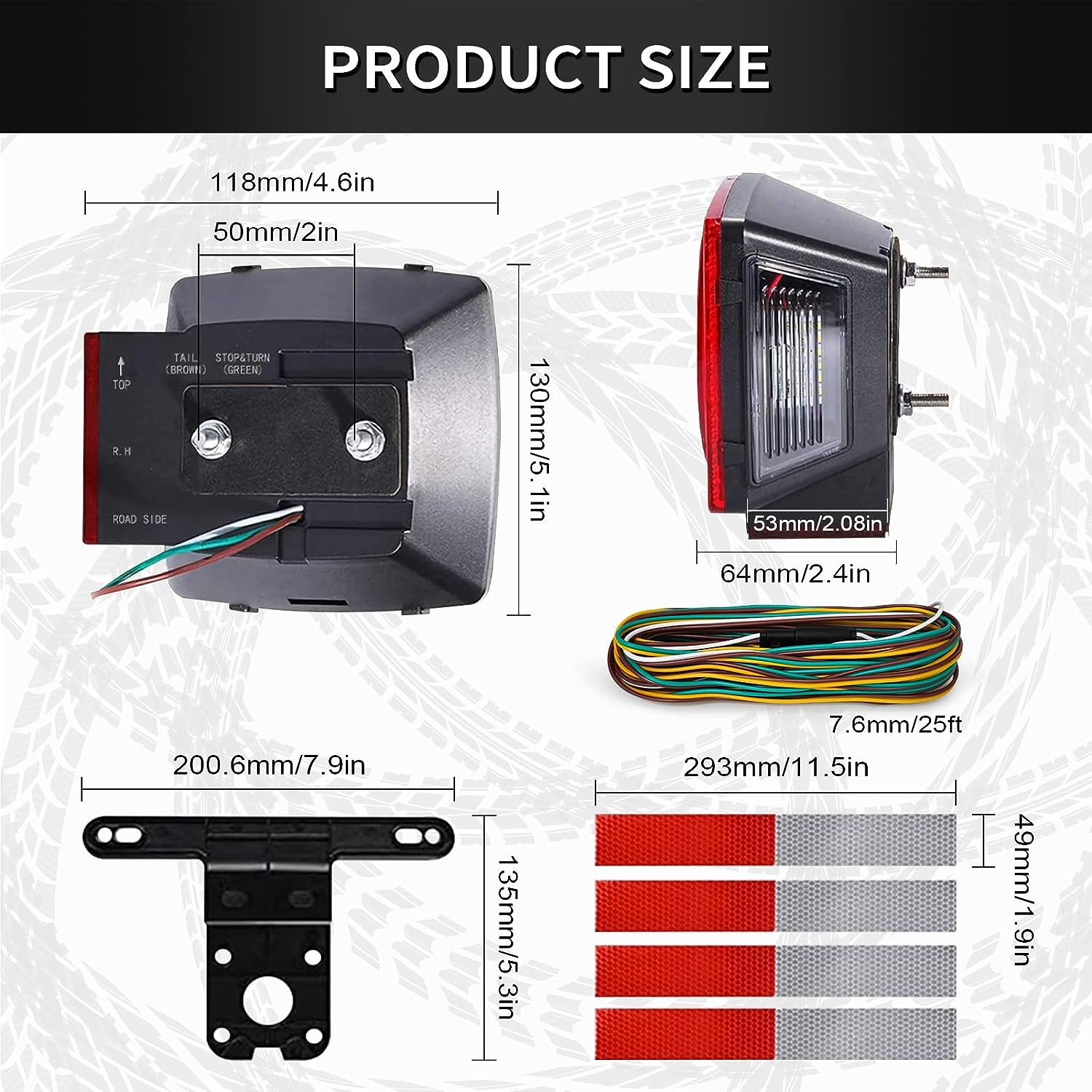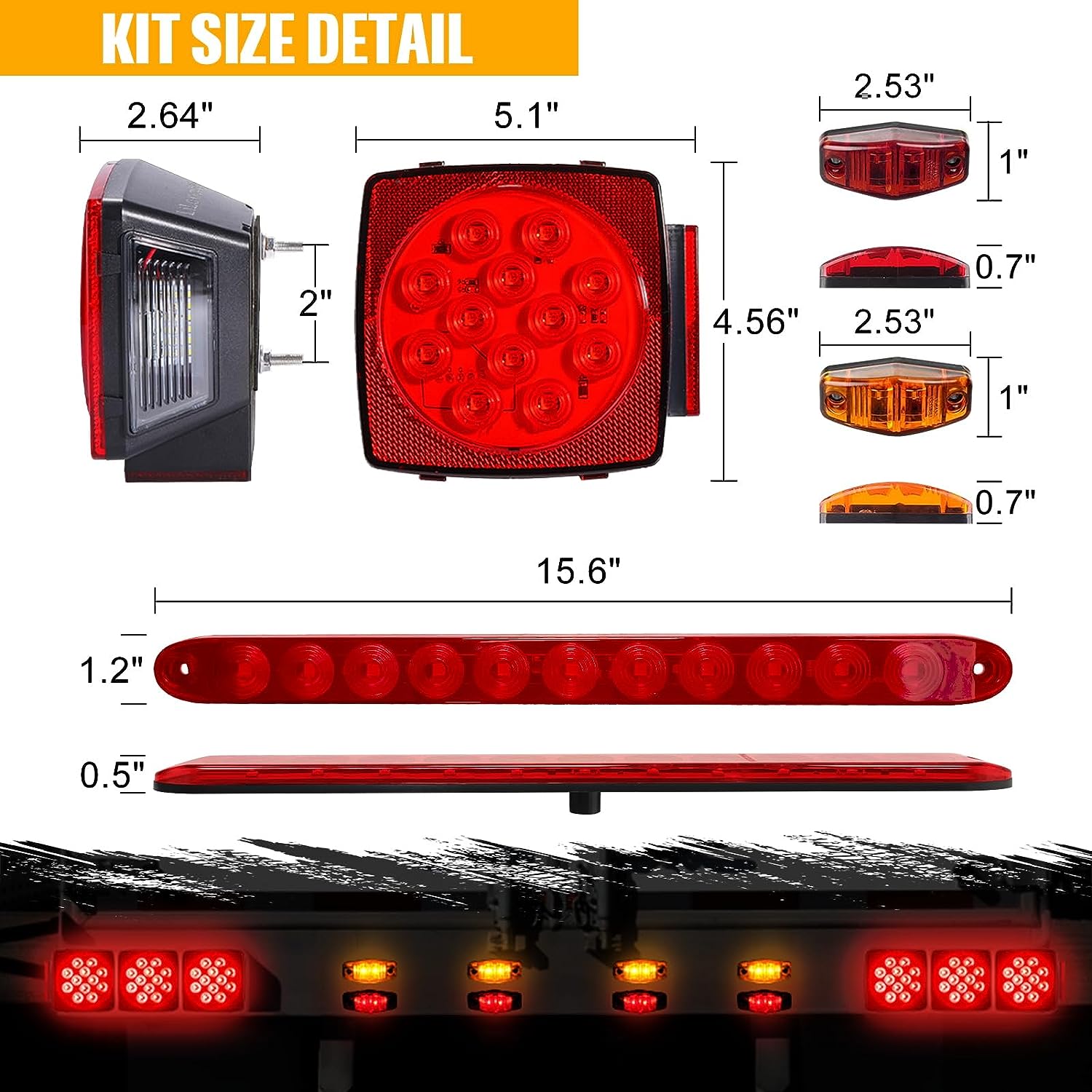 • ALL-IN-ONE KIT: The kit includes 2pcs square lights, 2pcs amber clearance lights, license plate bracket, 25-foot trailer wiring harness, 4pcs reflective strips and different types of stainless steel mounting hardware.