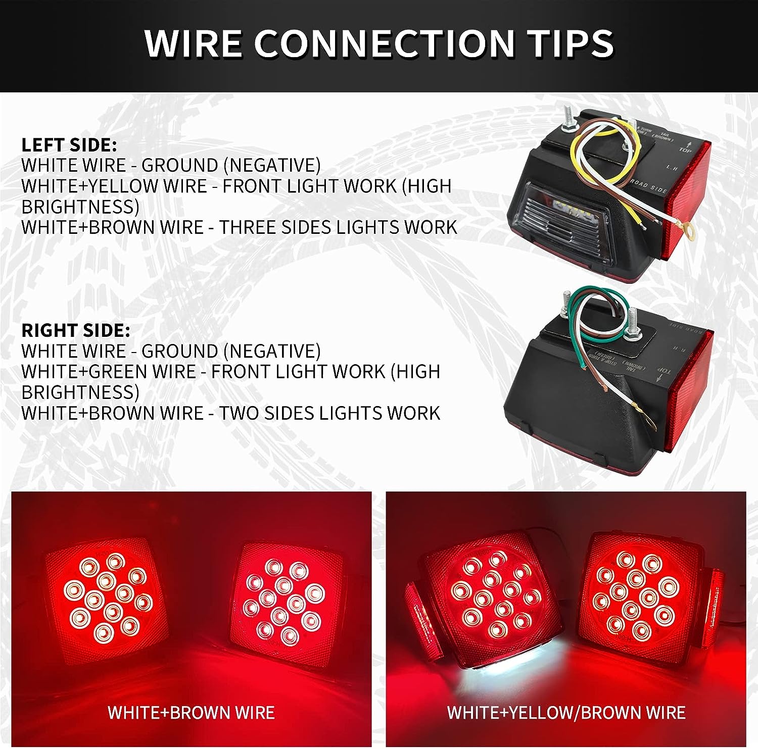 • EASY INSTALLATION: 2 optional mounting ways, you can mount on the back or the side of the trailer. Please make sure connect wiring and no electronic short before marine/underwater. Wiring diagram ships with trailer lights, you can also find it on instruction sheet.