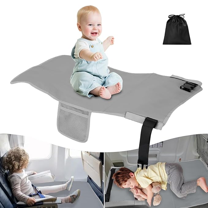 FOTN Toddler Airplane Bed, Airplane Seat Extender for Kids, Toddler Airplane Travel Essentials, Portable Baby Diaper Changing Pad, Kids Plane Footrest, Airplane Must Have for Toddlers (Grey)
