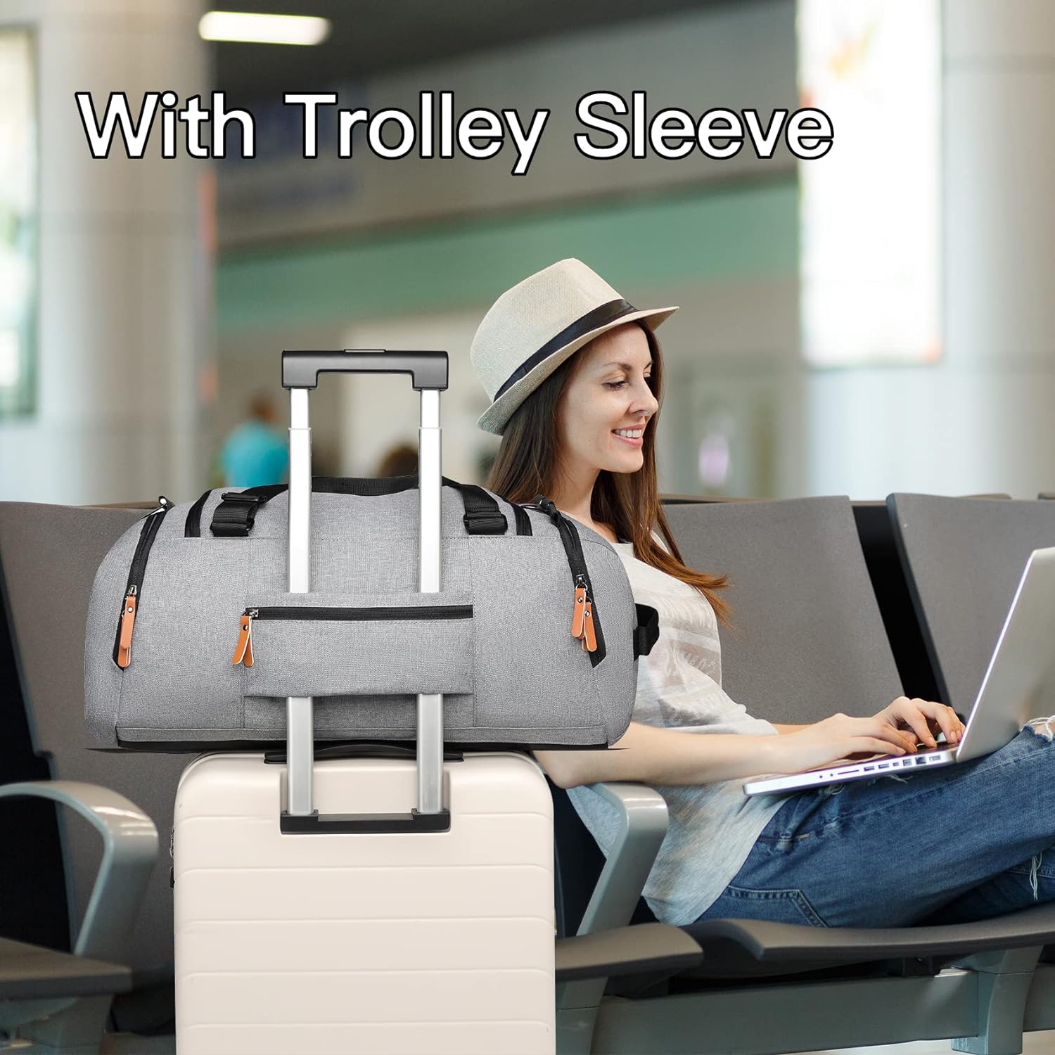 • FUNCTIONAL SPORTS BAG: Large Capacity-40L:(L)22.8" x (W)11.2" x (H)10.2", Weight: 0.7kg/1.5 pounds. Equipped with a removable and adjustable padded shoulder strap and double handles with padded, the travel duffel bag can be used as a carry-on, crossbody, and shoulder bag. Moreover, it can serve as a travel bag, weekend and overnight bag, or sports bag