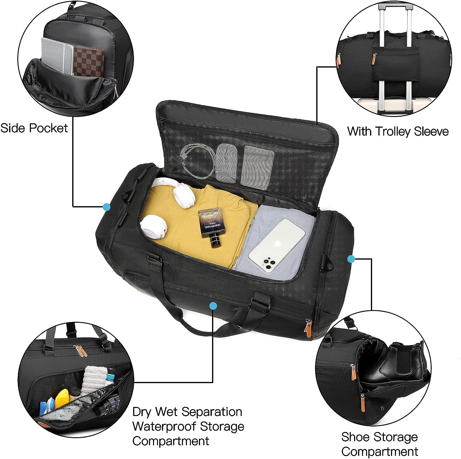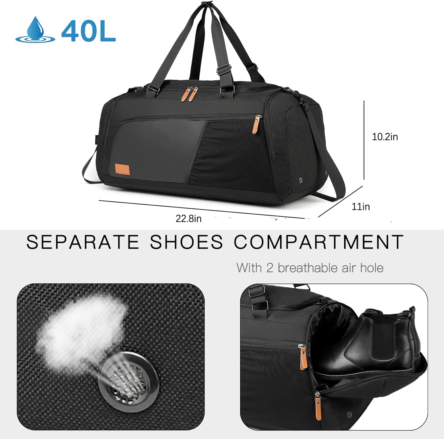 40L Travel Duffle Bag for Men,Waterproof Gym Duffel Bag with Wet Pocket & Shoes Compartment Weekender Overnight Backpack for Traveling Duffel Bag Backpack for Women (Black-40L)