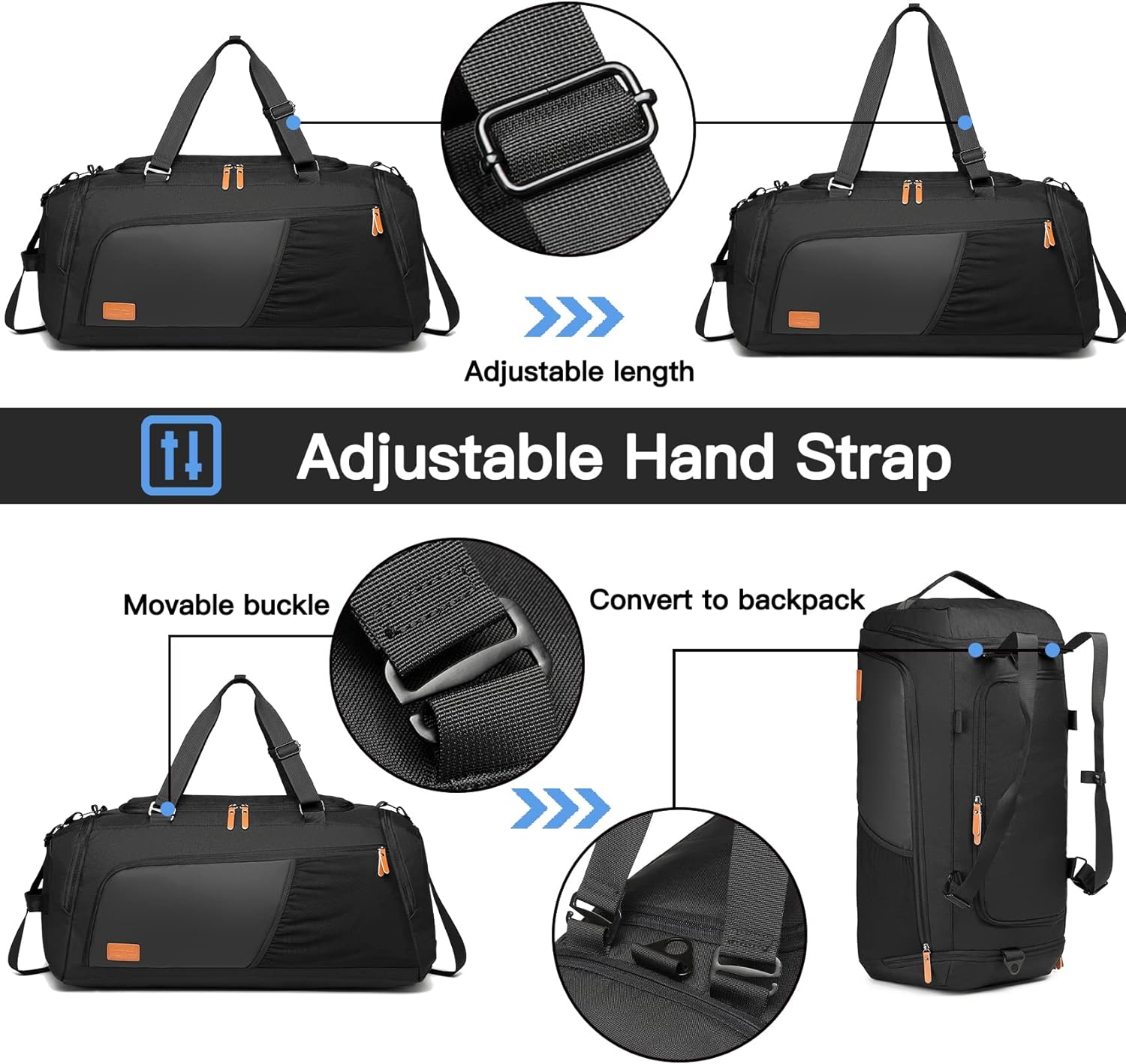 • 3-in-1 Travel Duffle Bag: This Travel Duffle Bag can be turned into a backpack according to your needs! Achieve multiple uses in one package! When used as a travel bag, it can be hand-carried or cross-body. What a cool design to have three bags at the same time!