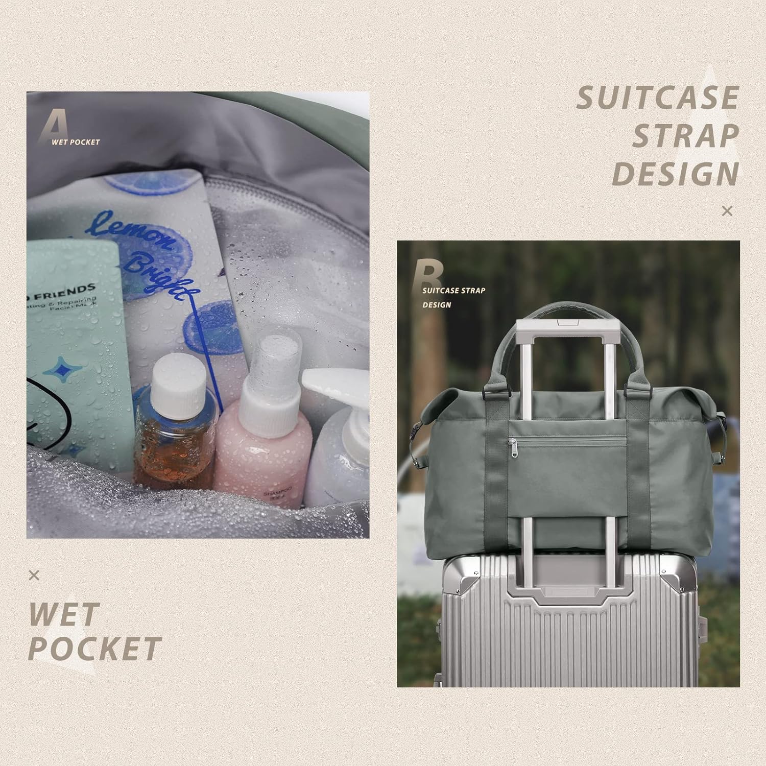 • 【Dry and Wet Separation】: The travel bag is made of high-density waterproof material, the dry and wet separation bag can help you separate dry and wet items, if you have wet clothes or towels, you can put them in the wet bag.