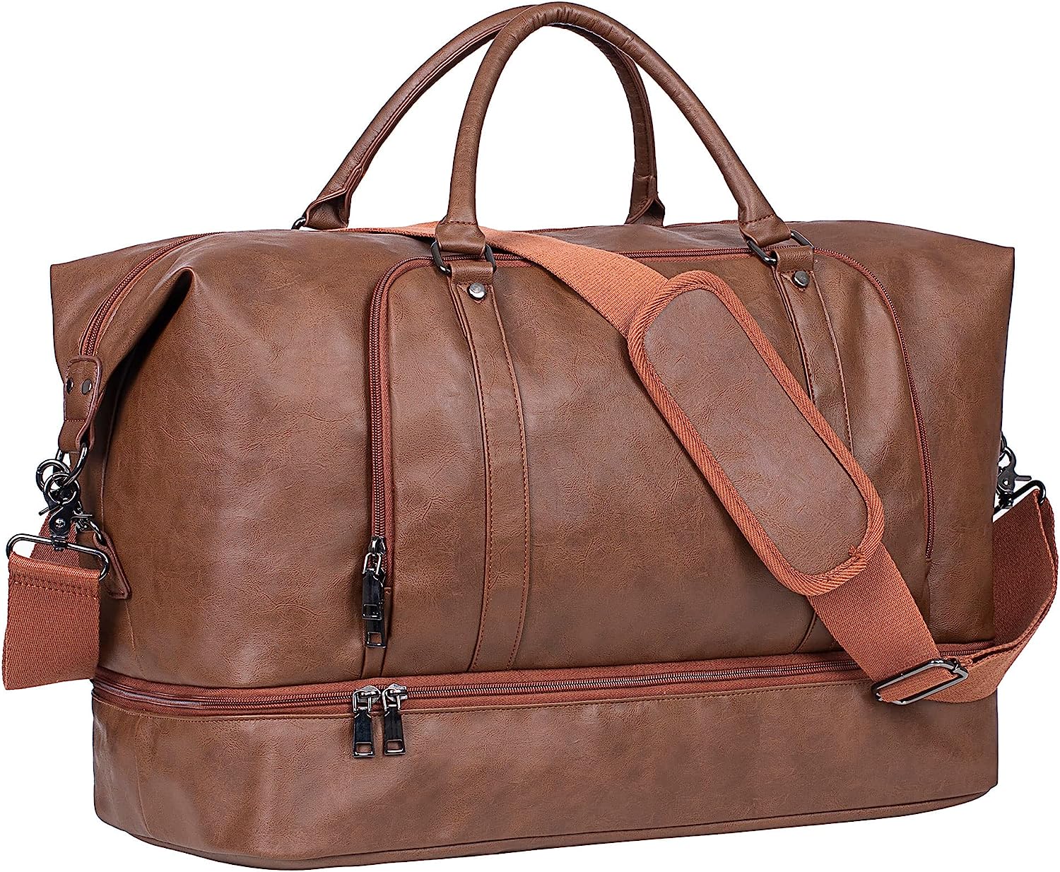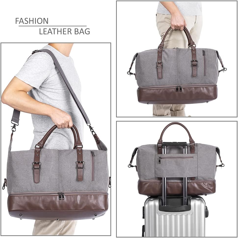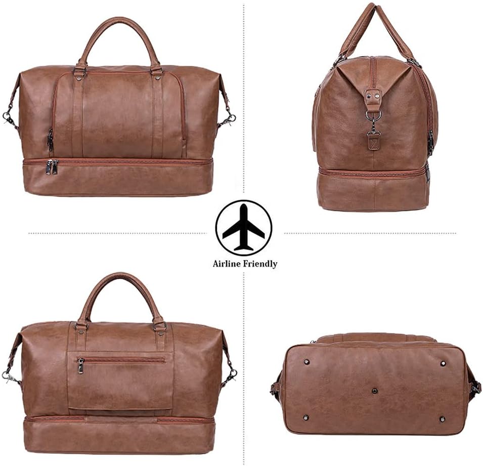 Leather Travel Bag with Shoe Pouch,Weekender Overnight Bag Waterproof Large Carry On Travel Tote Duffel Bag for Men or Women