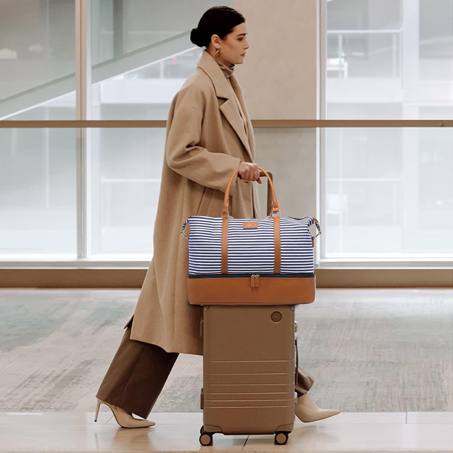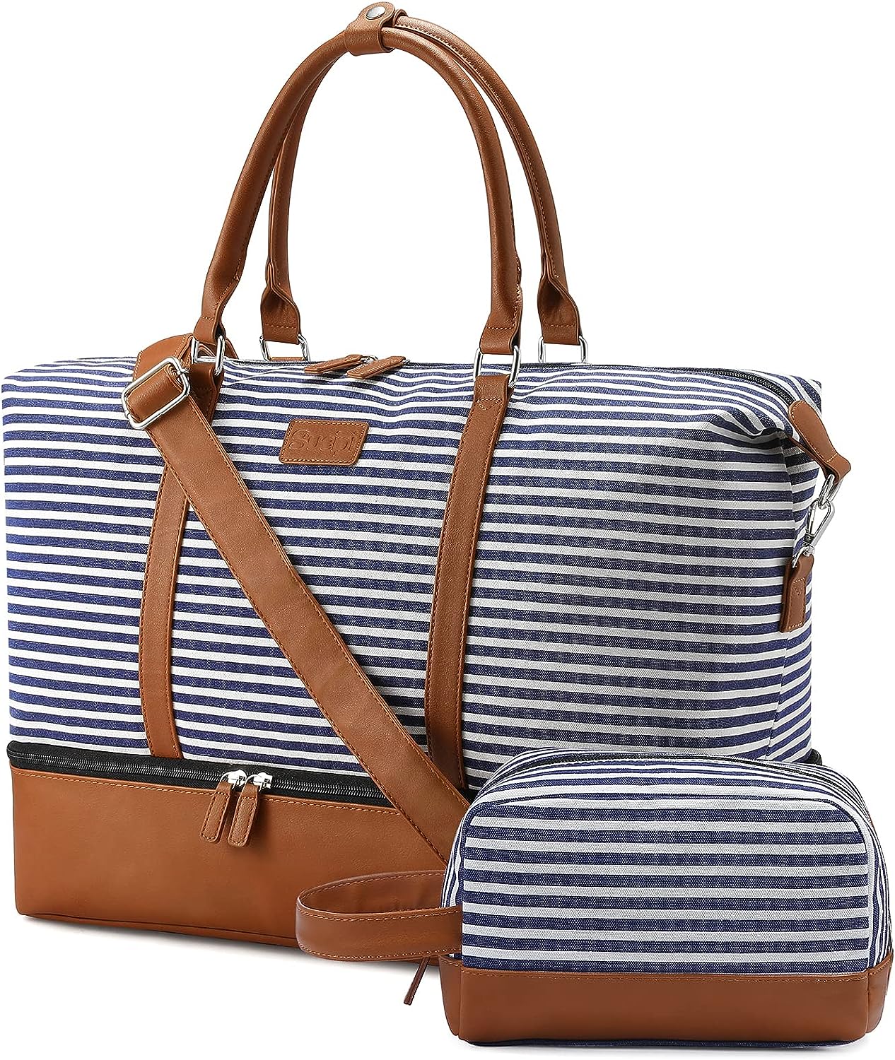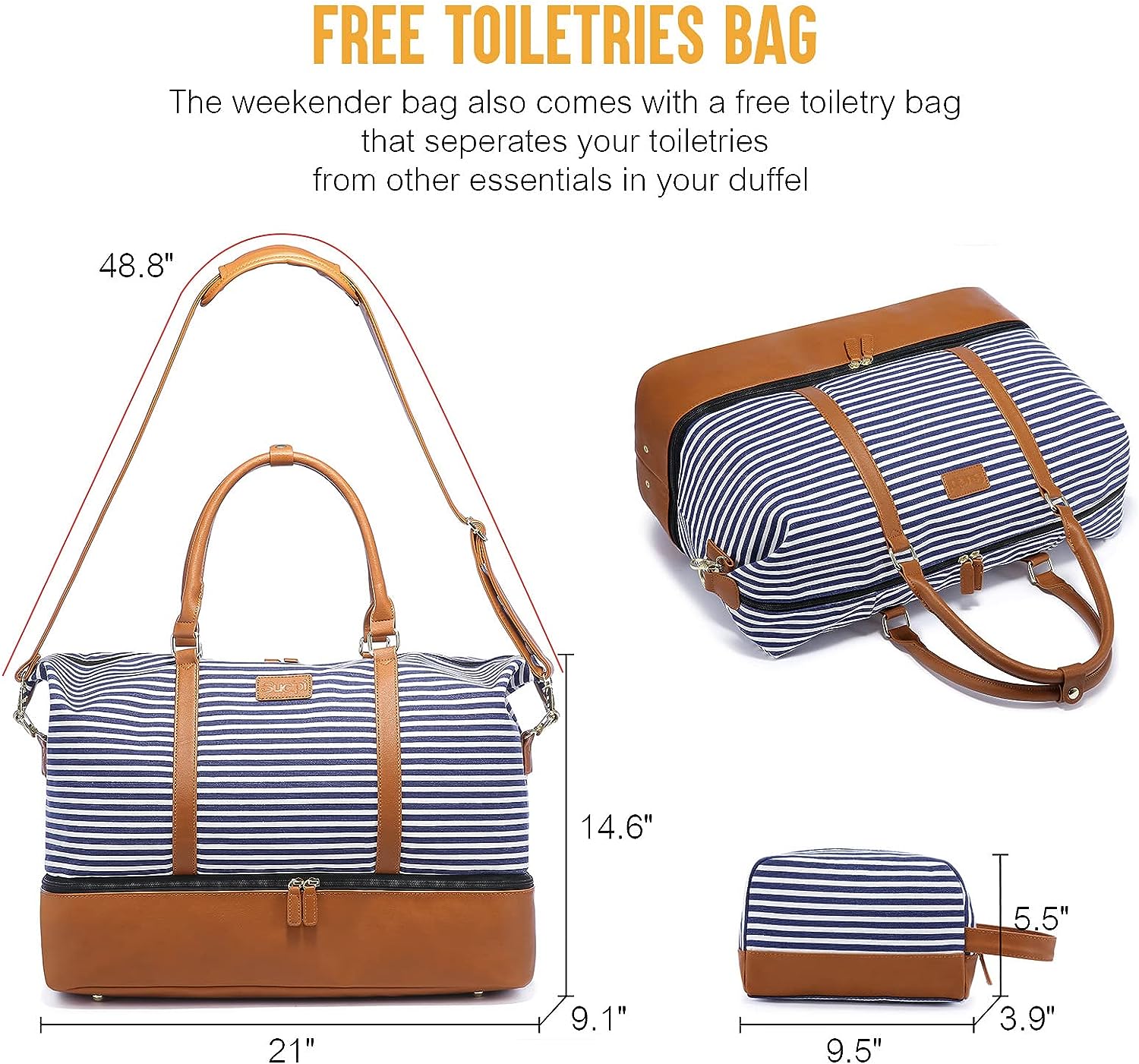 Sucipi Weekender Bags for Women Canvas Travel Duffel Bags with Shoe Compartment Overnight Bag Carry on Duffel Bag with Toiletry Bag for Travel Daily Use Hospital L(21")